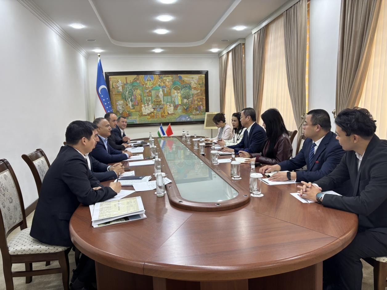 3月27日,张荣军率团与乌兹别克斯坦教育部第一副部长达利耶夫(Shakhrukh Daliyev),乌兹别克斯坦能源部副部长科比洛夫(KabilovAzizkhojaOchilovich)等在乌教育部会议室座谈。双方围绕在乌开设beat365英国官方网站乌兹别克斯坦分校、与ATG公司共建乌兹别克斯坦中文工坊,开展人才培养、人员培训、技术合作,与乌国高水平大学共建联合实验室等事项进行深入交流。各方达成以下共识:一是尽快与相关政府部门联合签署分校建设协议;二是乌教育部将大力支持beat365与乌国高校共建联合实验室;三是乌能源部将与beat365在技术专家学历培养、人员培训、技术研发等方面开展合作,并大力支持beat365与乌能源企业、能源院校开展校企、校际交流合作。