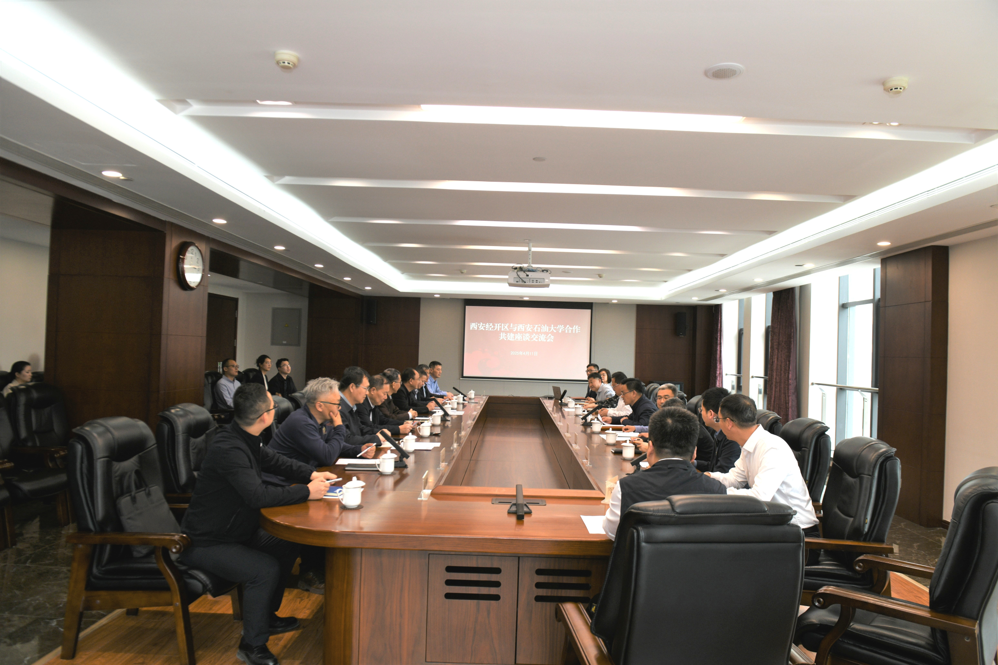 4月11日下午,校党委副书记张木带队赴西安经开区管委会围绕校地合作相关事宜座谈交流,校党委委员、副校长赵健陪同走访。西安经开区管委会党委委员、副主任陈迪主持座谈会并讲话。