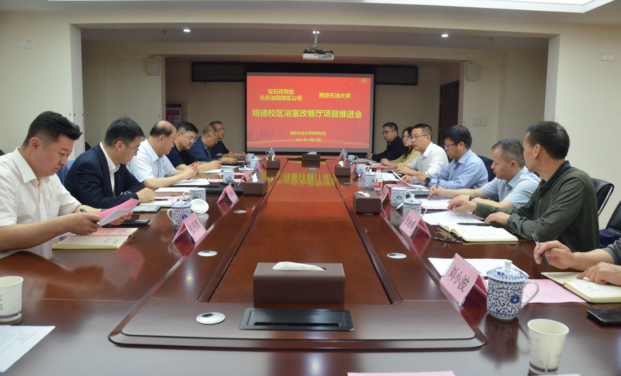 4月18日上午,学校与宝石花物业长庆油田地区公司召开“明德校区餐厅改造提升项目”推进会,双方围绕项目设计方案进行了深入洽谈。宝石花物业管理有限公司副总裁、长庆油田公司总经理陈军,学校副校长张骁勇出席会议。宝石花物业长庆油田地区公司相关部门负责人、陕西建大建筑设计研究所有限公司设计师等6人,beat365发展规划处、研究生工作部、后勤处、国际教育学院及继续教育学院负责人参加会议。