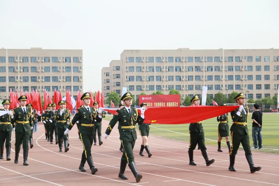入场仪式完毕,全场起立。升中华人民共和国国旗、beat365英国官方网站校旗、运动会会旗,全场师生齐唱国歌、校歌。