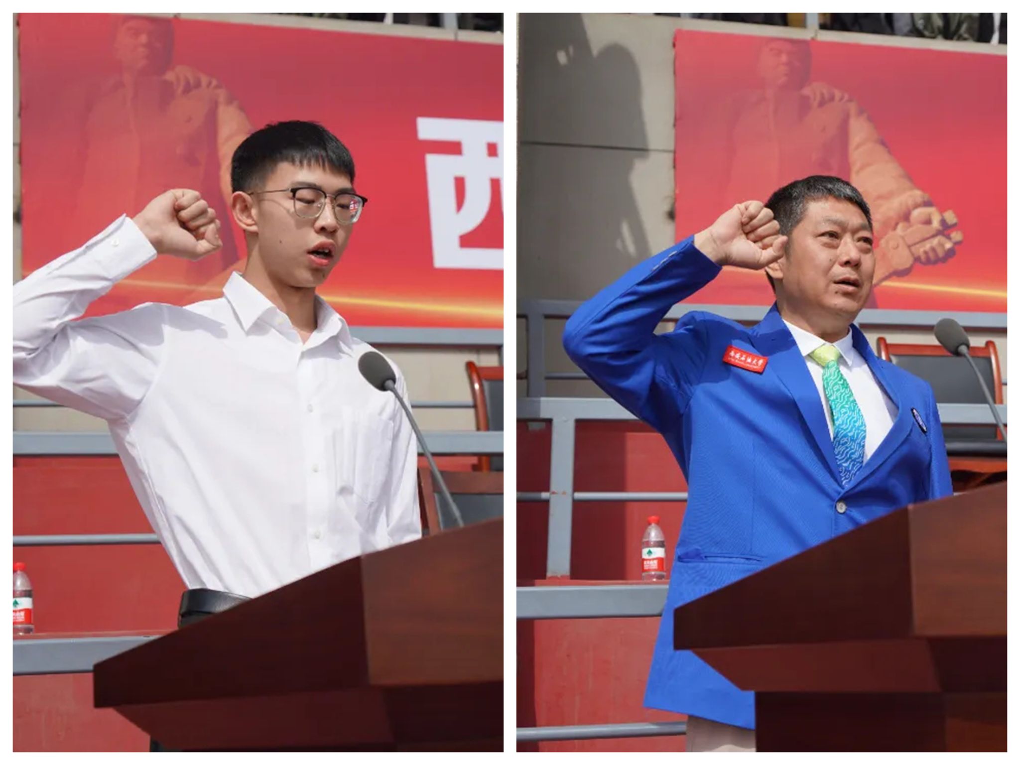 校长王进富代表学校致开幕词。他向全体运动员、裁判员及工作人员致以崇高敬意,并回顾了过去一年学校体育事业的丰硕成果。他指出,从“三动计划”点燃校园运动热潮,到环校马拉松2112名师生用脚步丈量能源热土;从校运会刷新3项历史纪录,到竞技团队勇夺48项省级荣誉、首摘全国桨板联赛金牌;从“陕西省排球训练基地”挂牌到武术短兵培训,西石大人始终以体育精神铸魂育人,以实干担当服务社会,书写了践行“健康中国”战略的生动篇章。