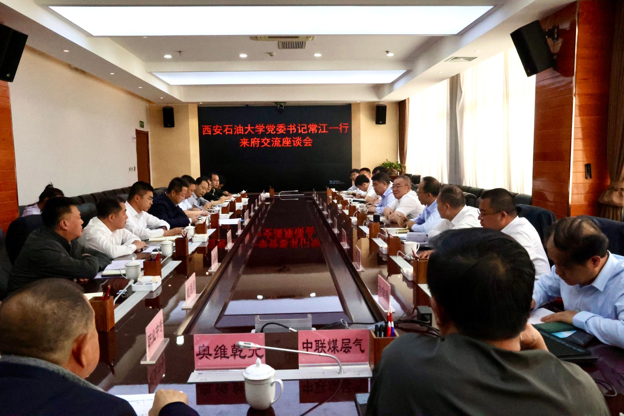 与会县领导对常书记亲自带队到府谷交流指导表示热烈欢迎和诚挚感谢,分别介绍了府谷的经济社会发展情况和在人才培养、能源勘探开发、生态环境治理、产业转型升级等领域的合作需求,期待开创校地合作新局面,共同为府谷县和西石大高质量发展贡献力量。