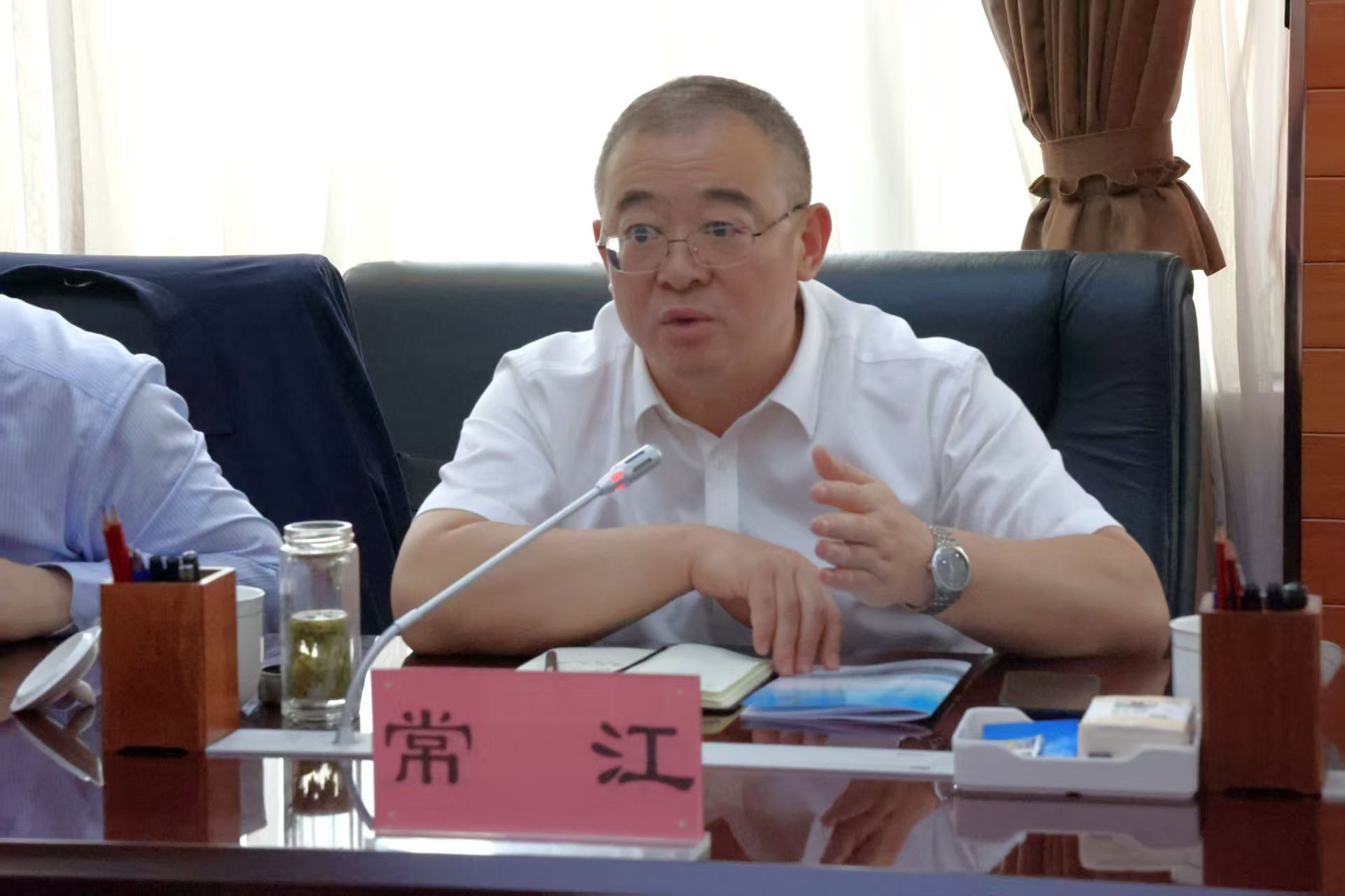 5月7日,常江一行到府谷县与县委书记杜志龙会晤并举行交流座谈会,县委常委、常务副县长丁炜、副县长刘春雷及府谷县各相关部门负责人参加会议。