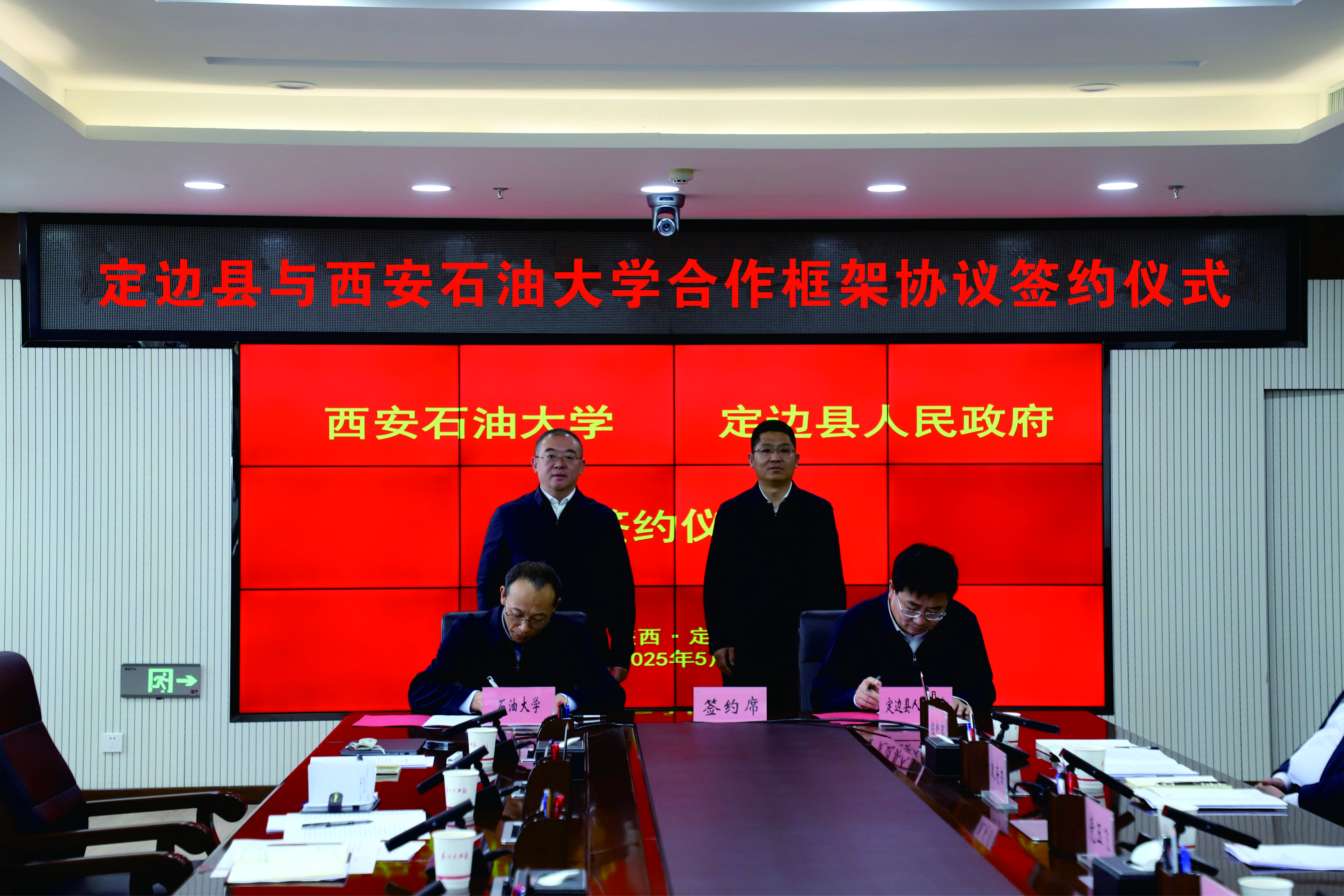 张君涛和党玉飞分别代表学校和定边县政府共同签署了《定边县人民政府与beat365英国官方网站校企地合作框架协议》。协议明确了双方将通过组建beat365英国官方网站定边油气研究院、建立科技小院、加强人才交流、开展课题研究、组建油气产业联盟、培育孵化中小微油服企业等方式,助力定边县油气上下游产业延链、补链、强链,推动石油天然气行业绿色、高效、可持续发展。