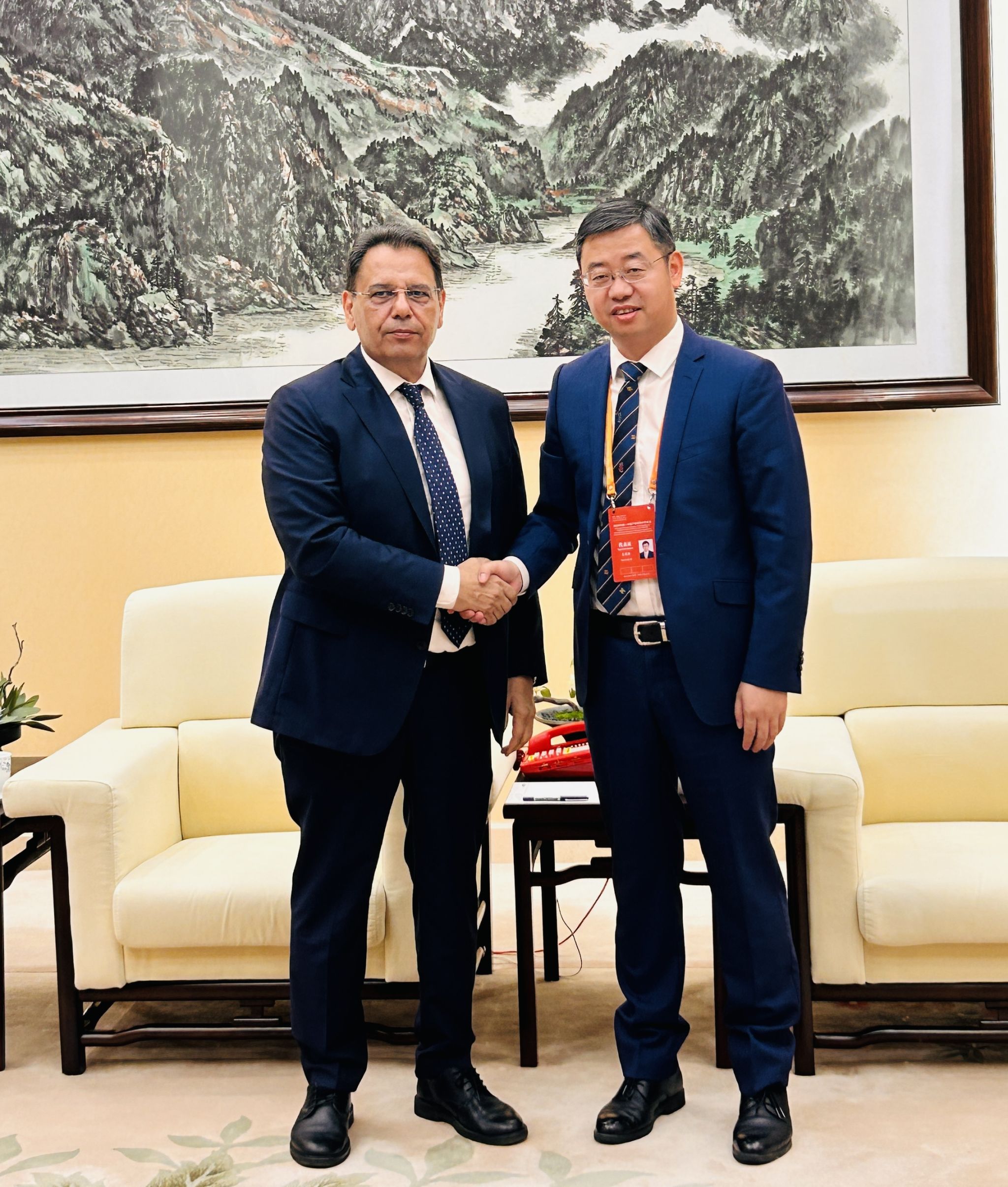 在2025中国—中亚产学研用合作会议期间,王进富与来华出席此次会议的乌兹别克斯坦高等教育、科学与创新部部长孔格拉特拜·沙里波夫(Sharipov Kongratbay)会晤。双方就beat365乌兹别克斯坦分校建设工作进行了深入交流。