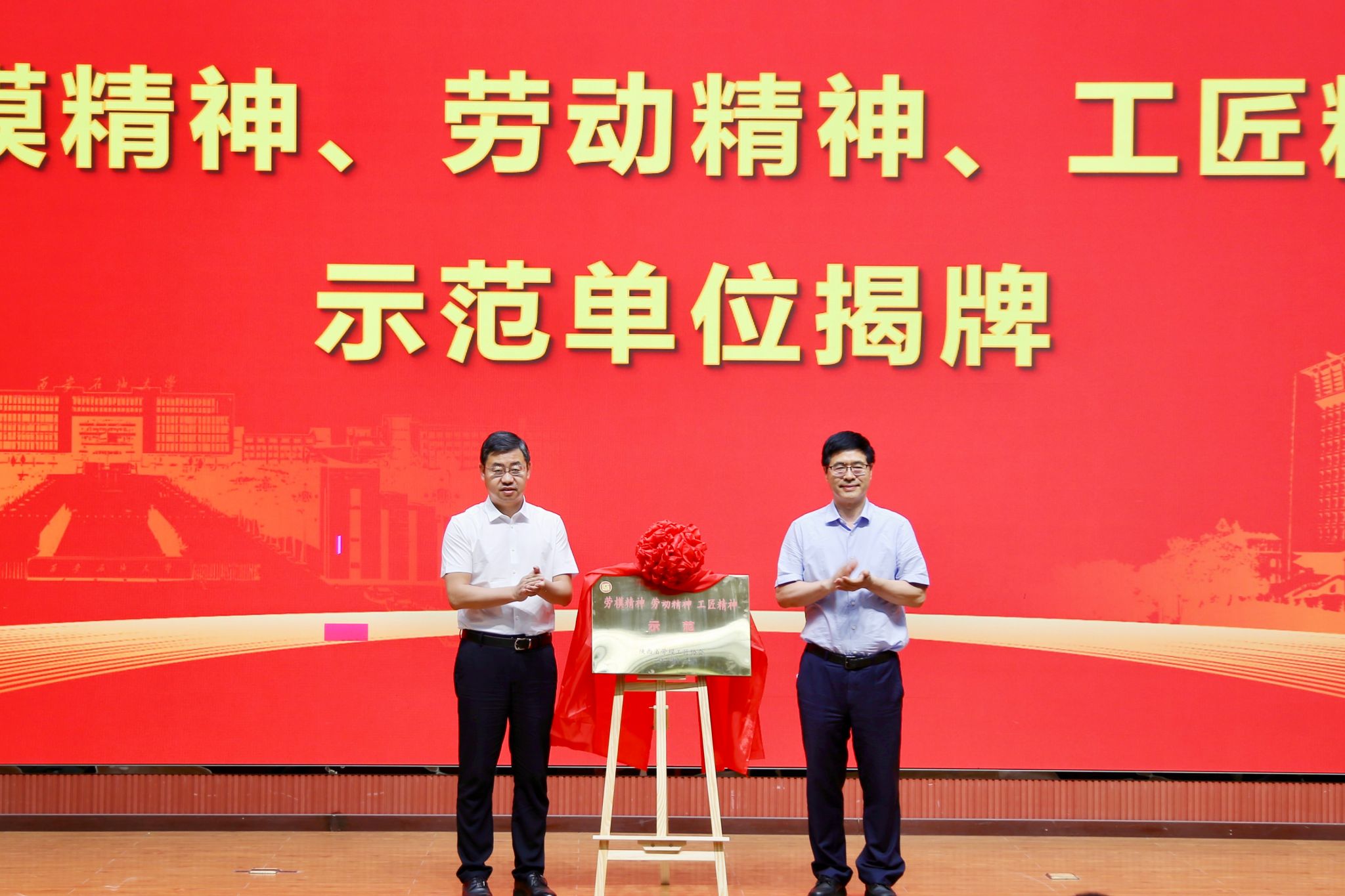 仪式上,张向阳宣读了《关于授予“beat365英国官方网站铁人王进喜纪念馆”“劳模精神、劳动精神、工匠精神”示范单位的通报》。