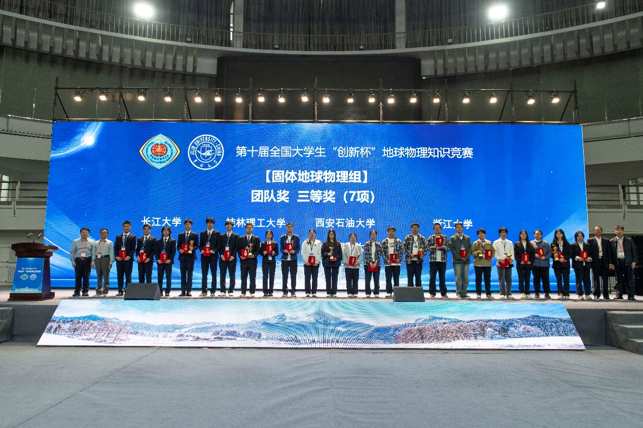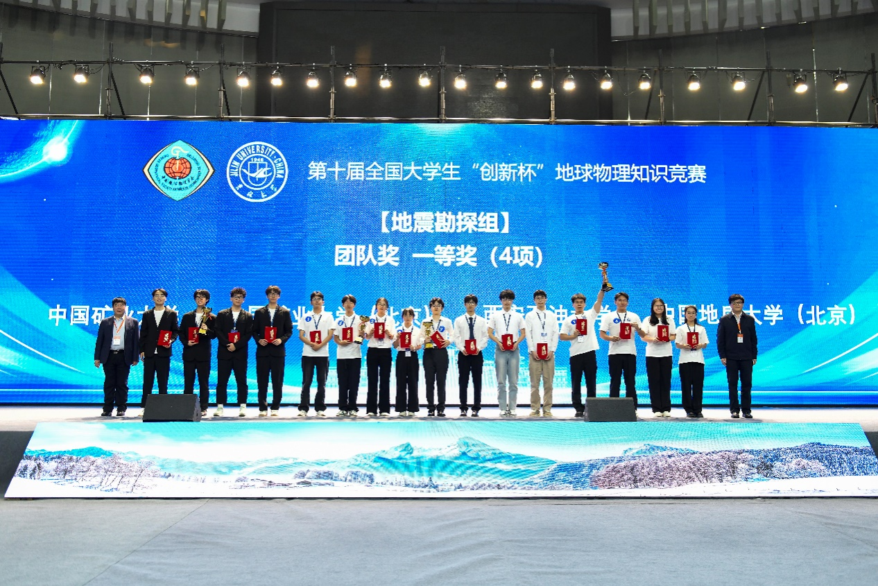 beat365地球科学与工程学院党政领导高度重视,派出由沈鸿雁副院长领队,李萌副教授、冯旭亮副教授、李欣欣副教授分别担任地震勘探类、重磁电勘探类、固体地球物理类指导教师的三支代表队参赛。通过笔试、视频评审、现场自我展现、个人必答题、团队必答题、综合论述题、团队抢答题以及辩论题等环节的激烈角逐,最终朱珺洁(地信22级学生)、赵玉峰(物探22级学生)、王梦(物探21级学生)、卜钊亮(物探21级学生)组成的地震勘探队伍荣获一等奖,李倩(地信22级学生)、李艳萍(物探22级学生)、王梦馨(地信22级学生)、朱少维(地信21级学生)组成的重磁电勘探队伍荣获二等奖,周晓娜(物探21级学生)、向晶瑾(地信22级学生)、王淑莹(物探22级学生)、刘子夏(物探22级学生)组成的固体地球物理队伍荣获三等奖。