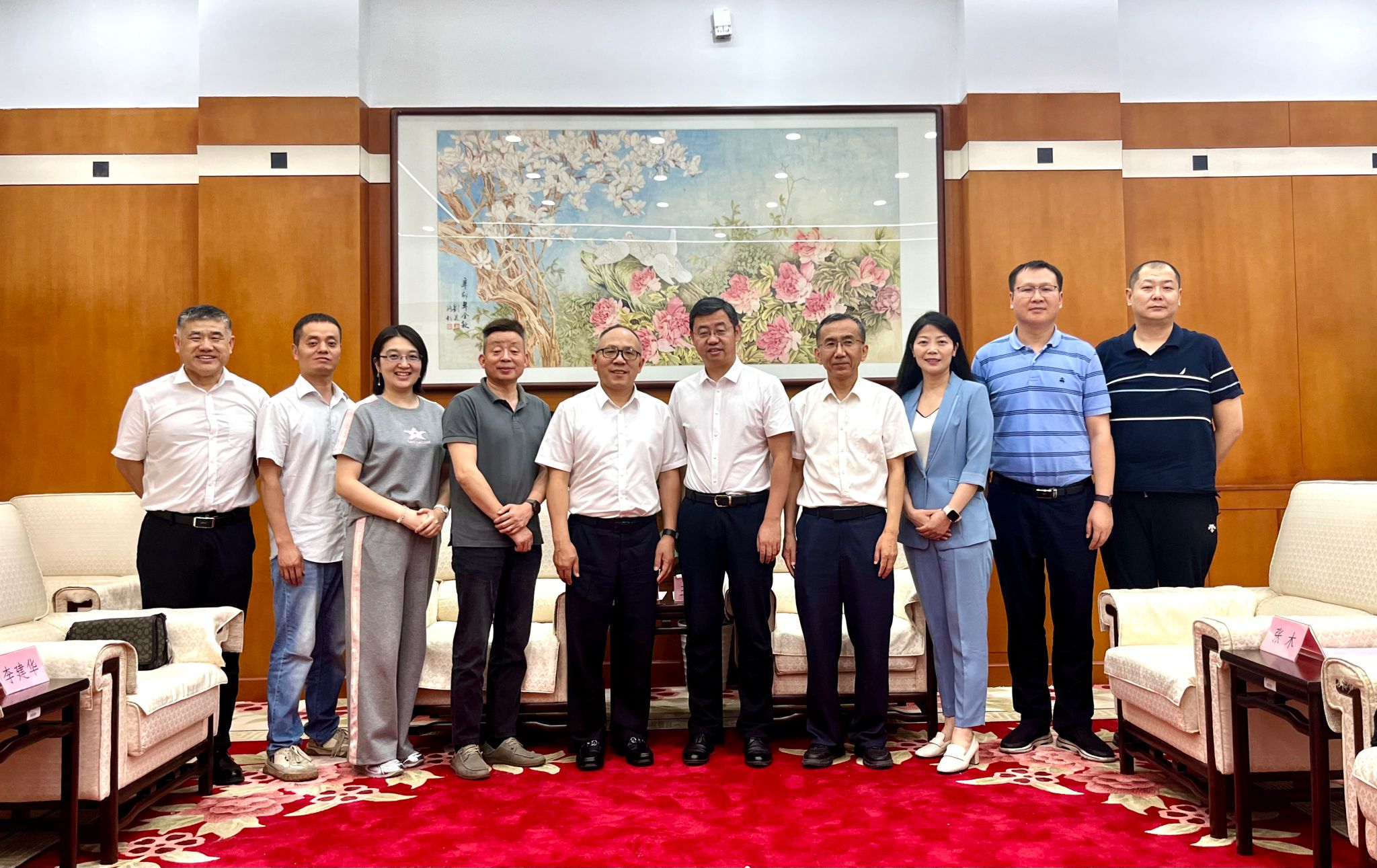 王进富对何荣一行“回家”表示热烈欢迎,对何荣长期以来对于学校的关心和支持表示衷心感谢,对何荣取得的成绩表示高度赞赏,并简要介绍了学校第三次党代会以来取得的成绩和未来的发展规划。他指出,学校近年来秉持开放办学理念,始终紧扣行业和产业发展前沿,不断优化学校空间布局,积极推动对外合作,大力推进产学研深度融合,致力于把学校科技、人才等优势,同行业的发展所需、特色优势相结合。他强调,在构建校友与母校命运共同体的理念下,学校将积极为校友搭建平台、提供资源、共享信息,以更有温度的服务、更有深度的交流、更有力度的合作,实现学校与校友双向赋能,携手开创校友个人事业和学校高质量发展新局面。希望通过与校友企业的紧密合作,深化“教育链、人才链、产业链、创新链”四链融合,充分发挥学校的科研和人才优势,通过共建研究院等形式,聚焦产业链发展,深化学科专业与产业对接;聚集人才链牵引,深化人才共引共育共用;聚力创新链融合,深化关键技术联合攻关,真正落实教育、科技、人才一体化发展,打造校企合作的新模式、新标杆和新典范。