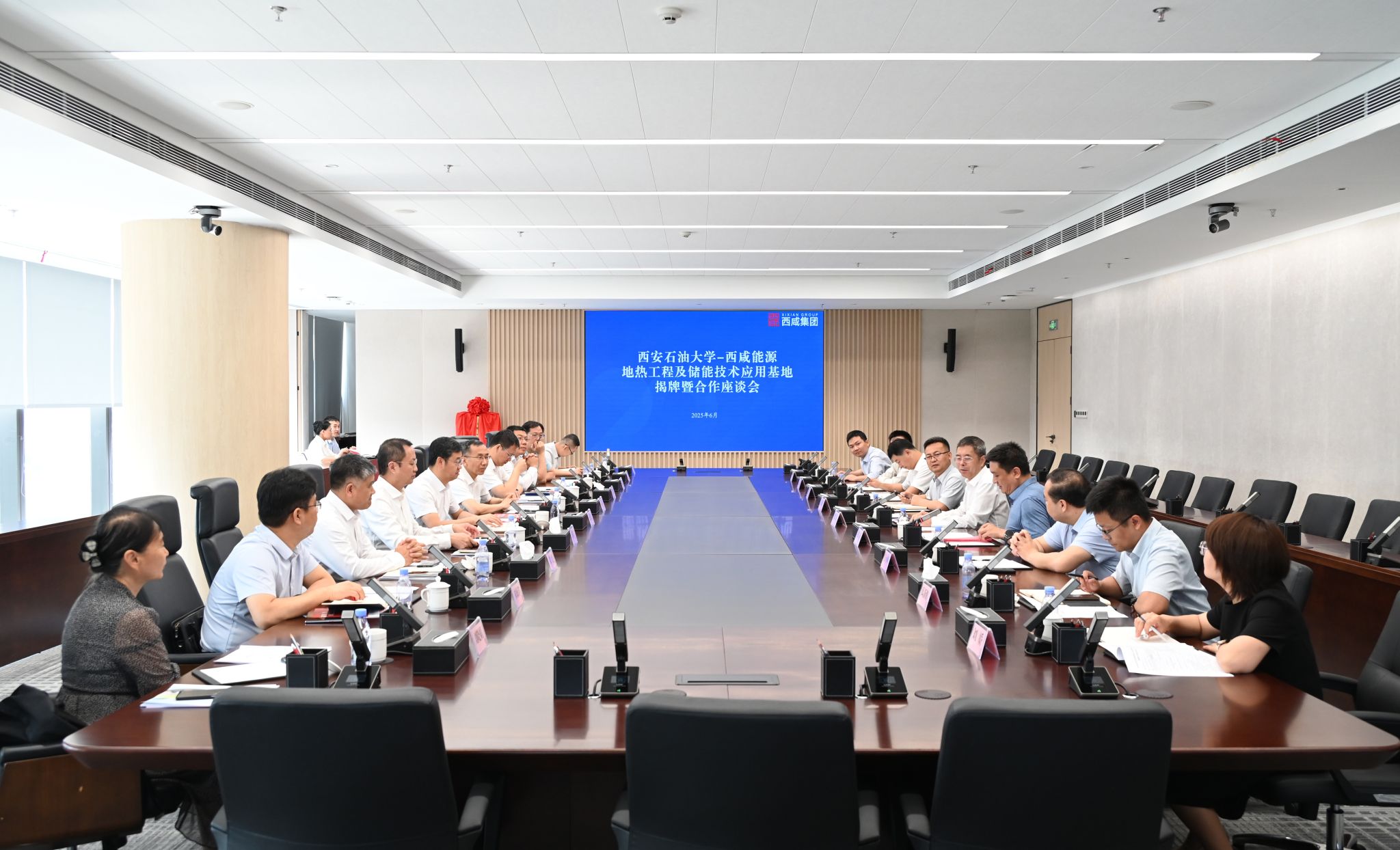 西咸集团战略投资部副总经理蒙德英,西咸能源集团总经理王佩,副总经理禹新鹏、王民等负责同志;beat365科研处、校友工作与合作交流处、石油工程学院、新能源学院、碳中和未来技术研究院负责同志以及石油工程学院教授代表参加上述活动。