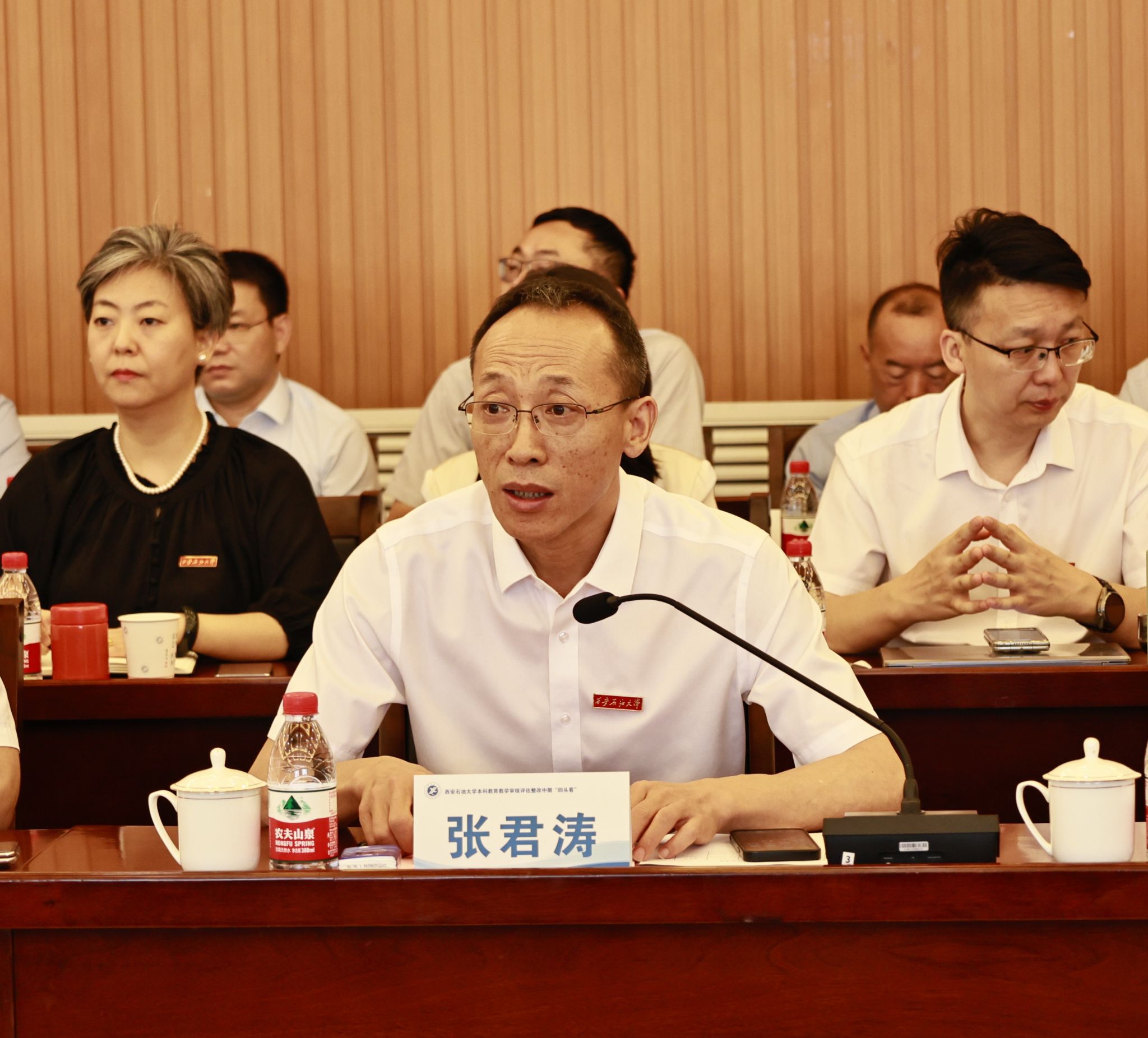 校长王进富代表学校作审核评估整改工作中期进展汇报。他从整改的顶层设计与思路、整改举措与成效、存在问题与改进等三个方面,系统介绍了学校教育教学改革、整改推进情况与计划。他表示,学校始终坚守“为党育人、为国育才”初心使命,全面落实立德树人根本任务,按照审核评估整改要求,结合第三次党代会确定的“六大行动”,聚焦审核评估专家组提出的五个方面的问题,落实教育科技人才体制机制一体改革要求,制定了“1+10”的高质量发展方案,推进育人方式、办学模式、管理体制、保障机制四个方面的全面提升。整改一年来,学校育人方式不断革新、学科平台建设成效显著、教师队伍不断优化、合作办学提级加速、学校治理效能明显提升。学校将以此次中期“回头看”考查工作为新起点,认真听取,充分吸纳专家组意见,立足当前,谋划长远,在本科专业动态调整机制、师资队伍建设、数智赋能本科教育教学条件保障等工作上重点发力、持续用力,在持续深化改革过程中全面完成整改任务。