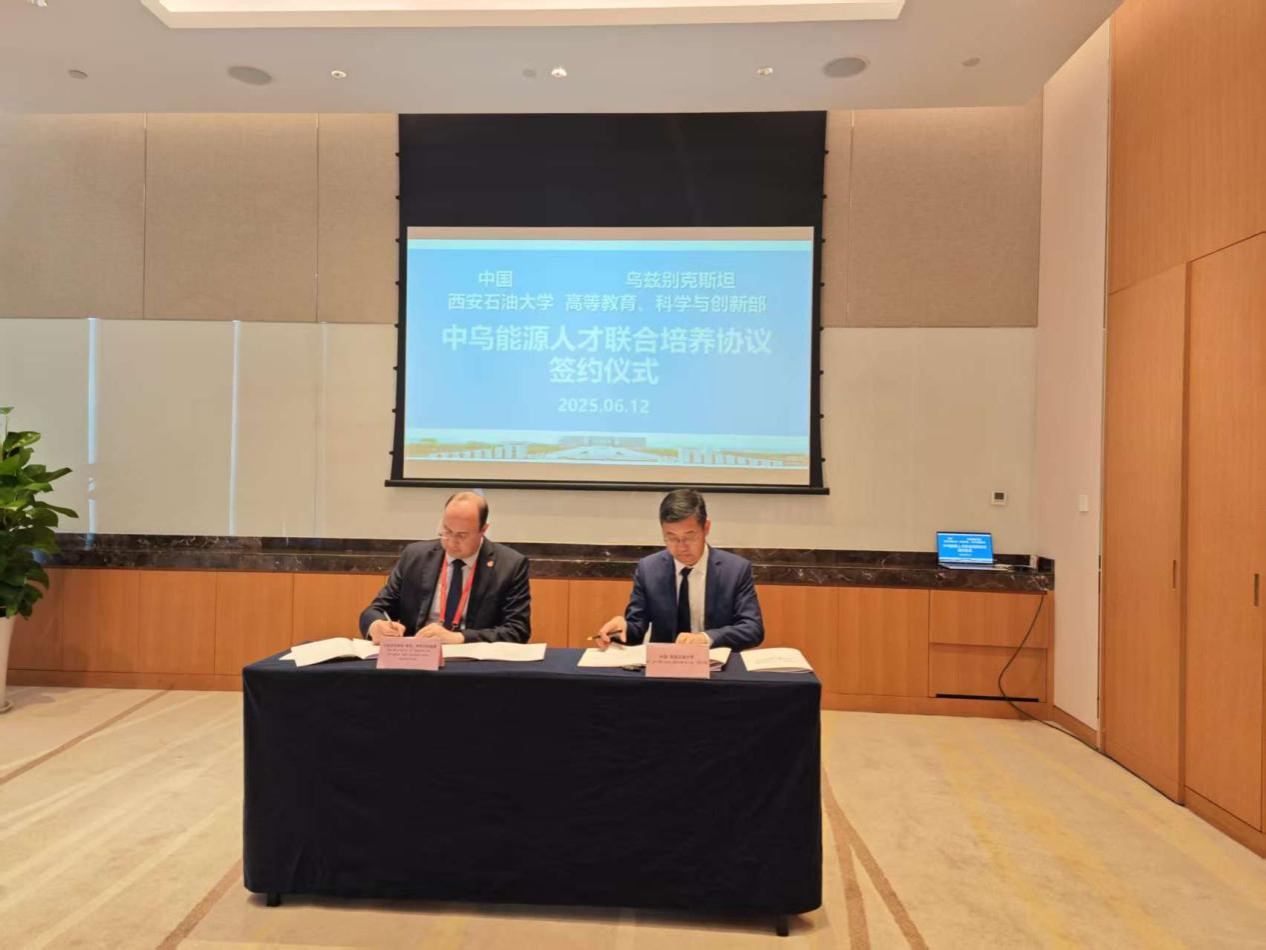 座谈会后,双方举行中乌能源人才联合培养协议签署仪式。王进富与奥塔别克·马卡莫夫分别签署学校与乌兹别克斯坦教育部中乌能源人才联合培养协议,及学校与乌兹别克斯坦能源部、教育部中乌能源人才联合培养协议,乌方教育部、能源部将共同支持学校与乌方开展能源领域人才培养工作。