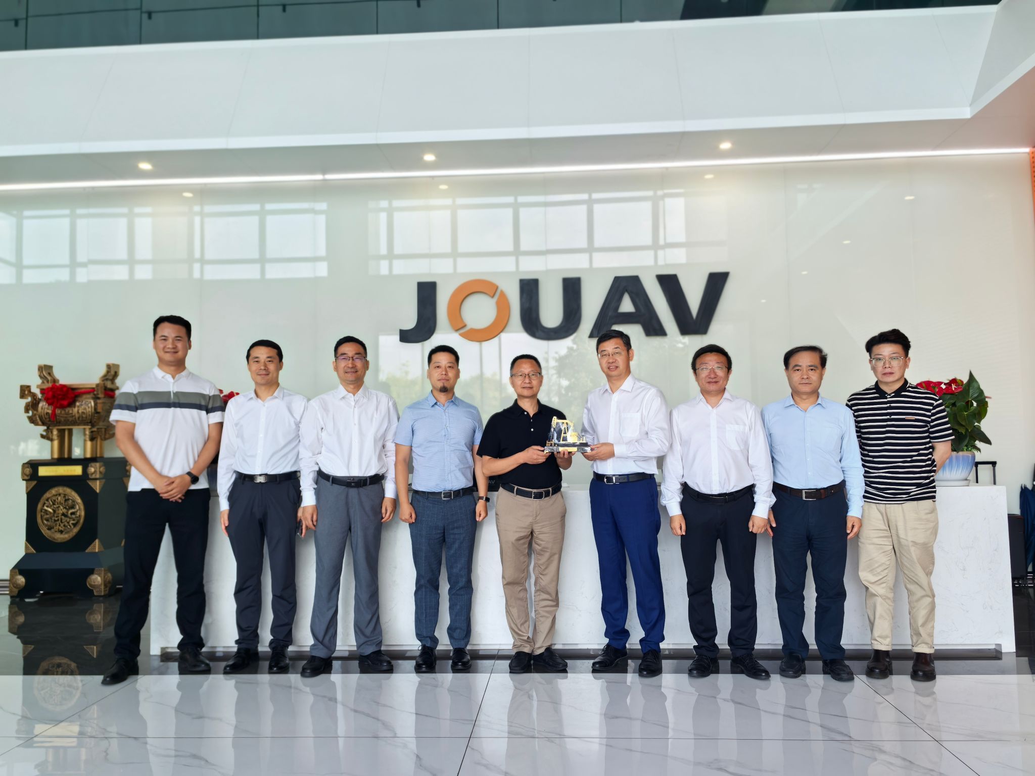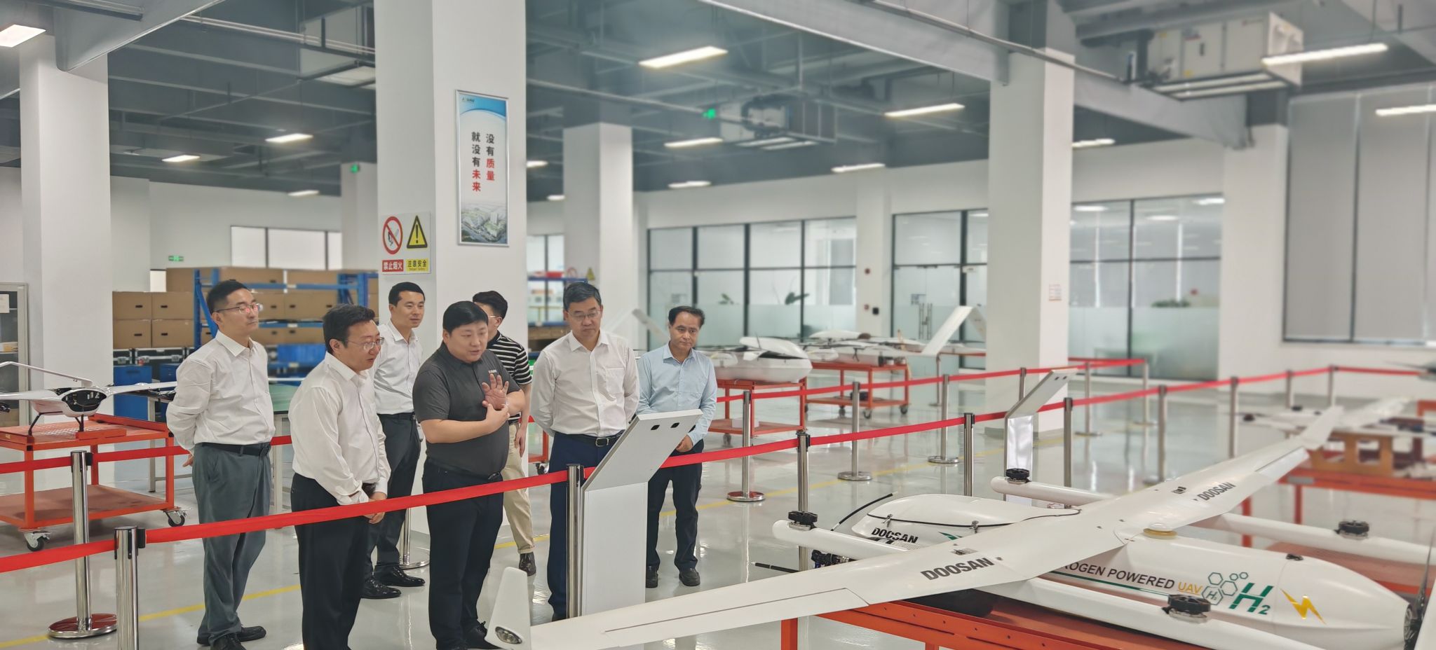 会前,在张峻陪同和讲解下,王进富一行参观了公司展厅,无人机生产线、机库指挥中心等,直观感受了企业的先进技术和生产实力。
