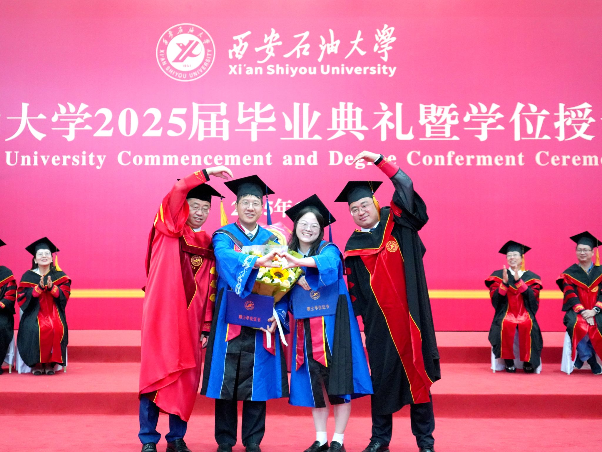 校长王进富为2025届毕业生致辞。他代表学校向2025届6317名圆满完成学业、取得学位的优秀学子表达祝贺与欢送,代表十八万校友向磨剑数载、即将启航新程的西石大学子表达祝福与欢迎。王进富与毕业生共同回顾了学校近年来在学科建设、人才培养、科学研究、校园文化、服务保障等方面取得的突破与变化,介绍了学校未来的发展规划,分享了何静校友从香山晨跑到世界之巅、用18年将登山探索淬炼成超越自我的攀登之路:以探索开辟疆域,以迭代锻造能力,以超越突破极限。他以《探索、迭代、超越》为题,嘱托毕业生:一是探索,以求知之姿丈量世界。探索是离开舒适、突破畏惧、勇闯未知的赞歌,是从“已知圈”向“未知域”的跨越。探索无界,以终身成长丈量生命的维度;探索深地:用科技之光唤醒沉睡的能源密码。二是迭代,以进化之力重塑自我。迭代是在探索基础上的持续优化,是对抗精神熵增、实现螺旋上升的必然路径。迭代人生,以进化思维构建终身成长的飞轮;迭代突破,用自主科技解构石油工业的底层代码。三是超越,以破界之志定义未来。超越是突破既有边界的质变,是从“小我”到“大我”、从行业到文明的维度跃升。超越自我,在不确定时代锻造确定的人生坐标;超越传统,以低碳科技重构能源行业的未来基因。王进富深情寄语广大毕业生站在AI与人类文明交汇的关键路口,如金刚石般进化成长,在能源技术攻坚的“地心熔炉”里,既能承受地下200℃的高压锤炼,也能折射出智慧能源的璀璨光谱,探索未知,迭代自我,超越极限。