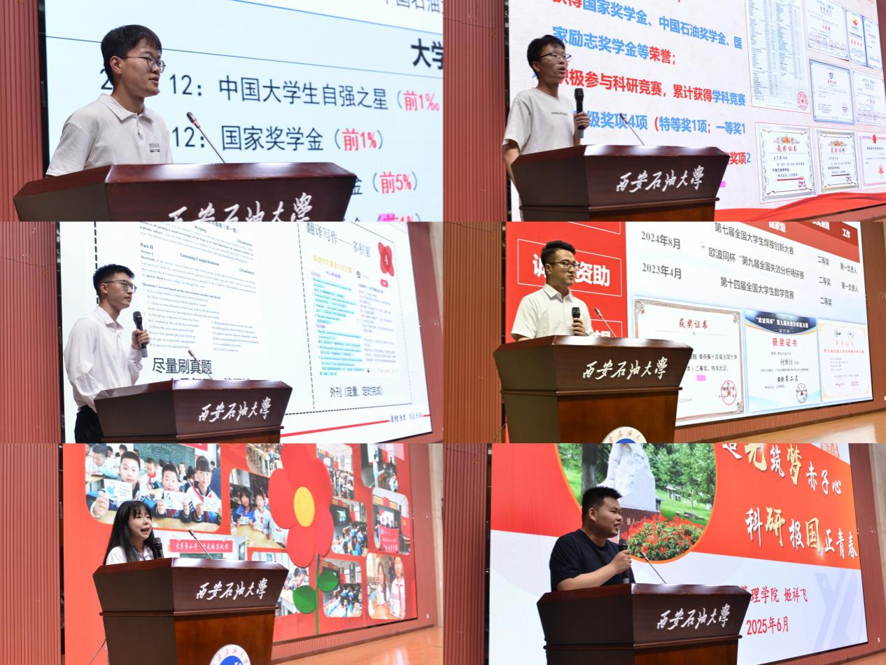 六位来自不同学院的优秀受助学子,诚挚地分享了他们奋斗的青春故事与成长感悟,专业学习的高效方法,平衡学业与社会实践的时间管理技巧,及面对困难的心态调适经验。他们的故事里有学业拔尖,将感恩之心化为志愿服务的温暖实践;有心怀能源报国志,刻苦攻关,成功推免至顶尖学府的奋进足迹;有在学科竞赛中披荆斩棘、勇攀高峰的执着追求;有潜心钻研,在学术前沿笃行追梦的坚定身影;有百折不挠,在探索中毅勇前行的不屈精神;有从受助者成长为助人者,将温暖传递的动人蜕变。石工学子安世亮表示:“国家和学校的奖助政策让我能够心无旁骛的求学,更是精神上的鼓舞,也时刻提醒我要怀感恩之心,立心中之志。”经管院研究生姬祥飞鼓励学弟学妹们:“我们新时代青年要敢于有梦、勇于追梦、勤于圆梦。”他们的故事虽各不相同,但都闪耀着自强不息、感恩奉献的光芒,深深打动了在场的每一位听众。