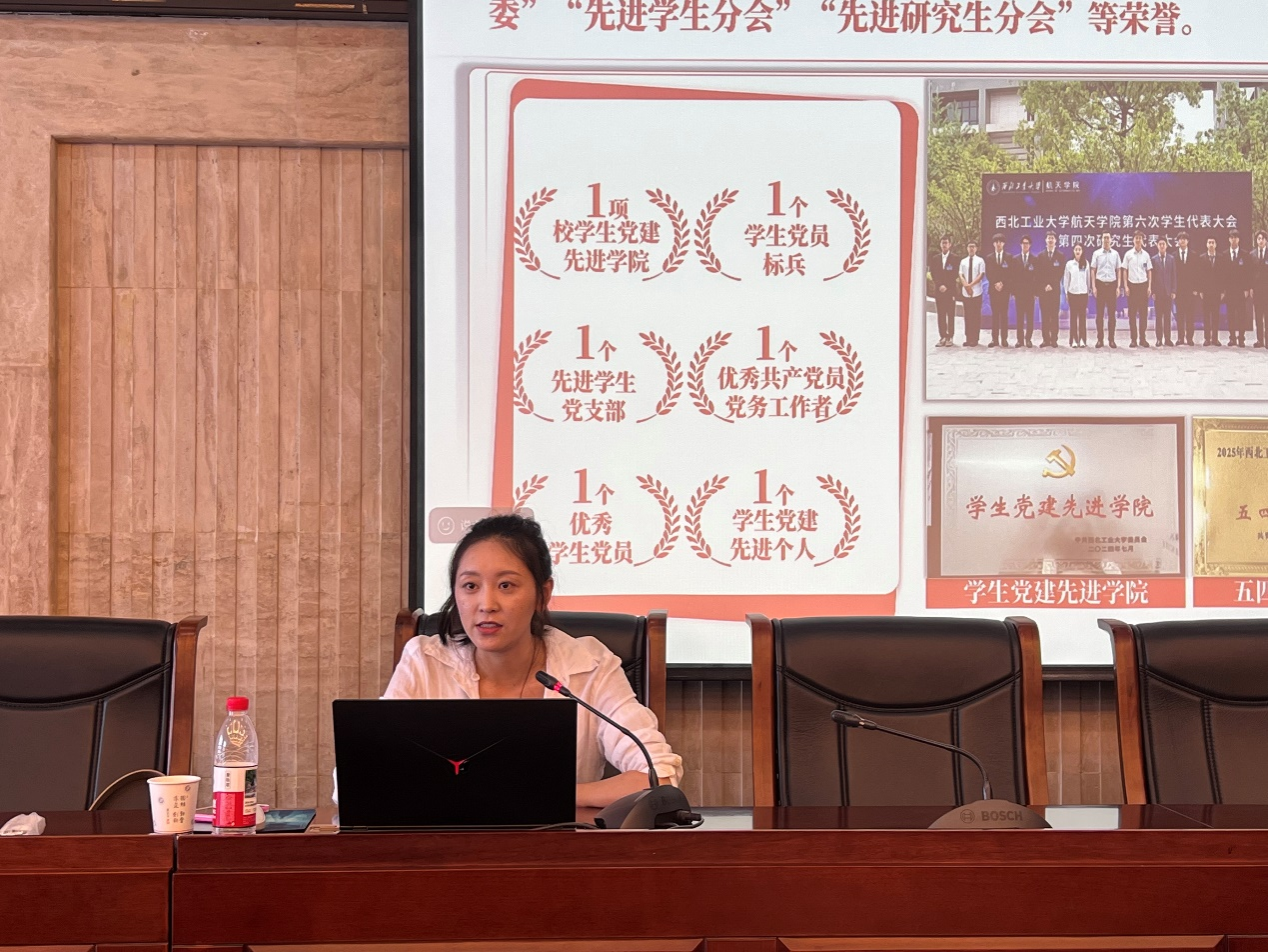 西北工业大学航天学院辅导员孙艳梅为全体学生党支部书记作《党建赋能,以高质量党建推动高质量人才培养》专题讲座。她从强化政治引领、筑牢理想信念“强堡垒”、夯实“总师型”人才培养思想根基,深化党建赋能、点燃创新驱动“新引擎”、锻造“总师型”人才培养能力基础和弘扬榜样力量、投身大国重器“主战场”、砥砺“总师型”人才培养强国担当等三个维度介绍了航天学院党建“双创”工作举措与成效,为高质量党建引领事业高质量发展提供了有益借鉴。
