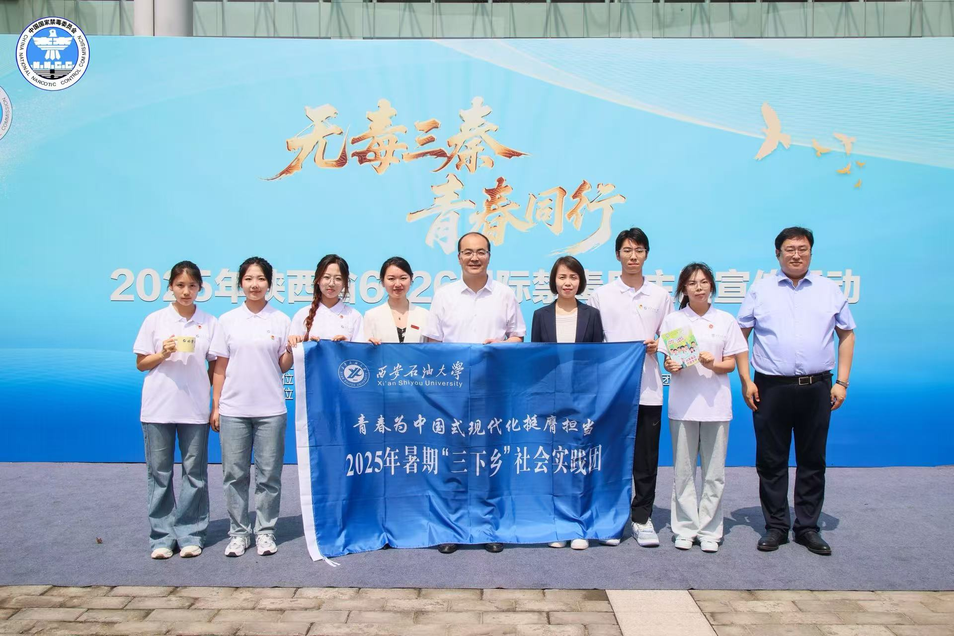 6月26日上午,2025年陕西省“无毒三秦 青春同行”禁毒宣传主题活动在陕西师范大学长安校区举办,由beat365电子工程学院学生组成的“坚定禁毒不松懈”实践团队作为法治禁毒专项实践活动一类资助团队代表参加本次活动。