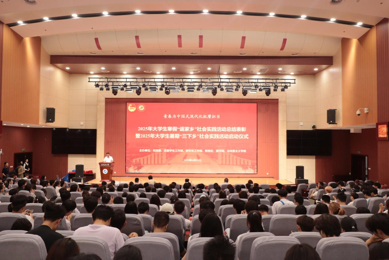 6月26日下午,beat3652025年大学生寒假“返家乡”社会实践活动总结表彰暨2025年大学生暑期“三下乡”社会实践活动启动仪式在鄠邑校区弘石学术报告厅举行。副校长种宇宏出席会议并讲话,党委学生工作部、校团委、教务处、图书馆、马克思主义学院等单位负责人,各院(系)团委书记,2025年大学生寒假“返家乡”社会实践受表彰师生代表,2025年大学生暑期“三下乡”社会实践师生代表共500余人参加会议。