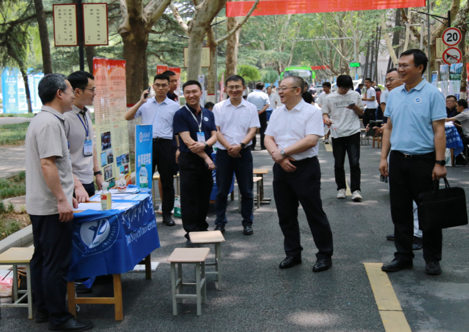 6月26日,校园开放日暨高考招生咨询会在雁塔校区石油路火热开启。校党委书记常江、校长王进富、副校长张君涛莅临现场指导工作,听取活动的组织情况汇报,并与考生、家长及工作人员亲切交流。学生工作处、保卫处、教务处、国际交流与合作处、后勤处、校医院、各院(系)招生主要负责人及专家教授代表60余人参加了咨询活动,吸引了500余名考生及家长前来咨询。