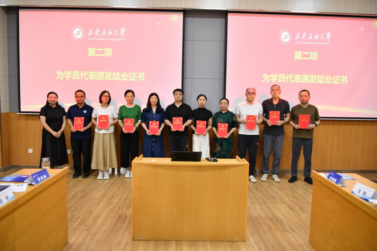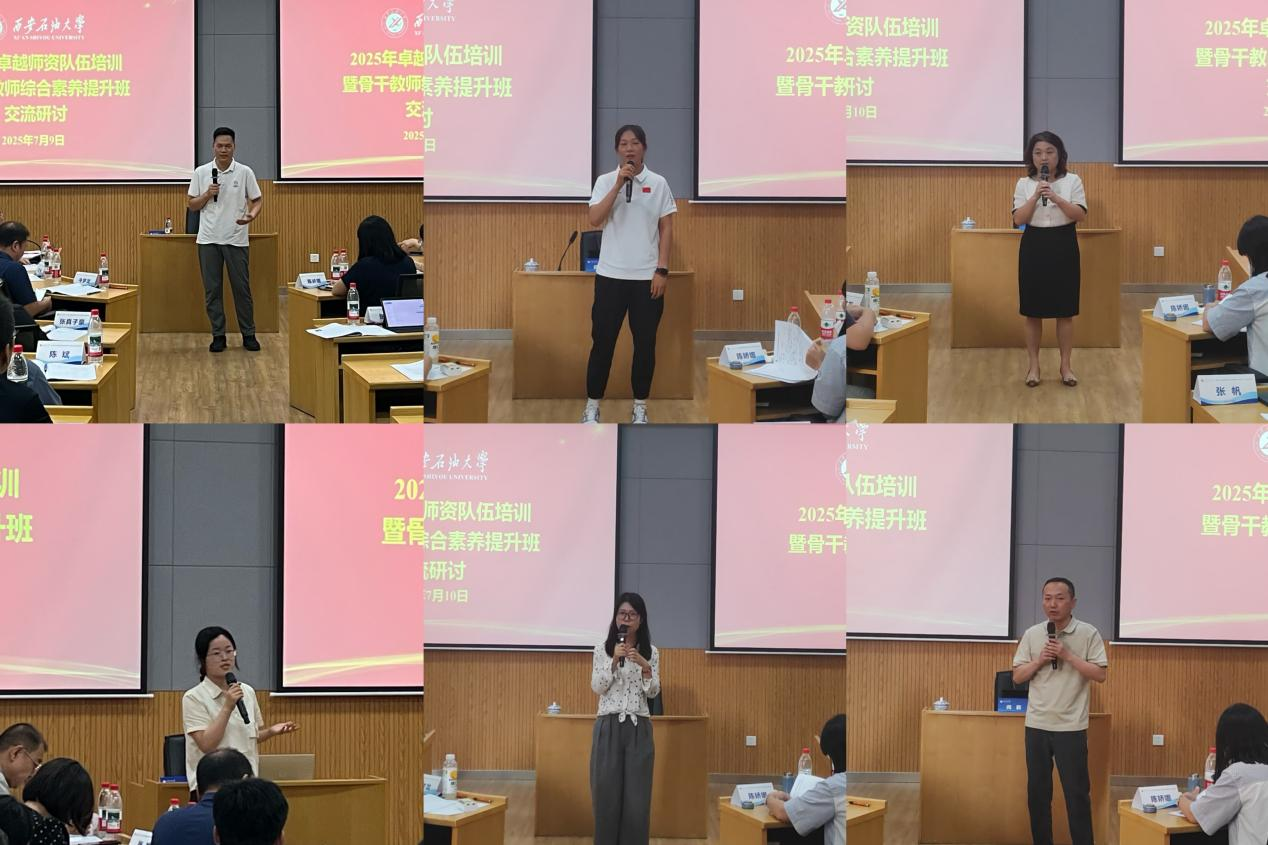 7月11日下午,培训班举办结业式。石油工程学院时宇、外国语学院冯娟、化学化工学院牛梦龙、电子工程学院陈娇娜、机械工程学院王天琦、马克思主义学院王恩6名参训教师作交流发言,分享了学习心得体会,表示通过研修开拓了学术视野,深化了思想认识,提升了综合素养,今后将学以致用,行胜于言,把学习成果运用到实际工作中,为学校各项事业发展贡献力量。