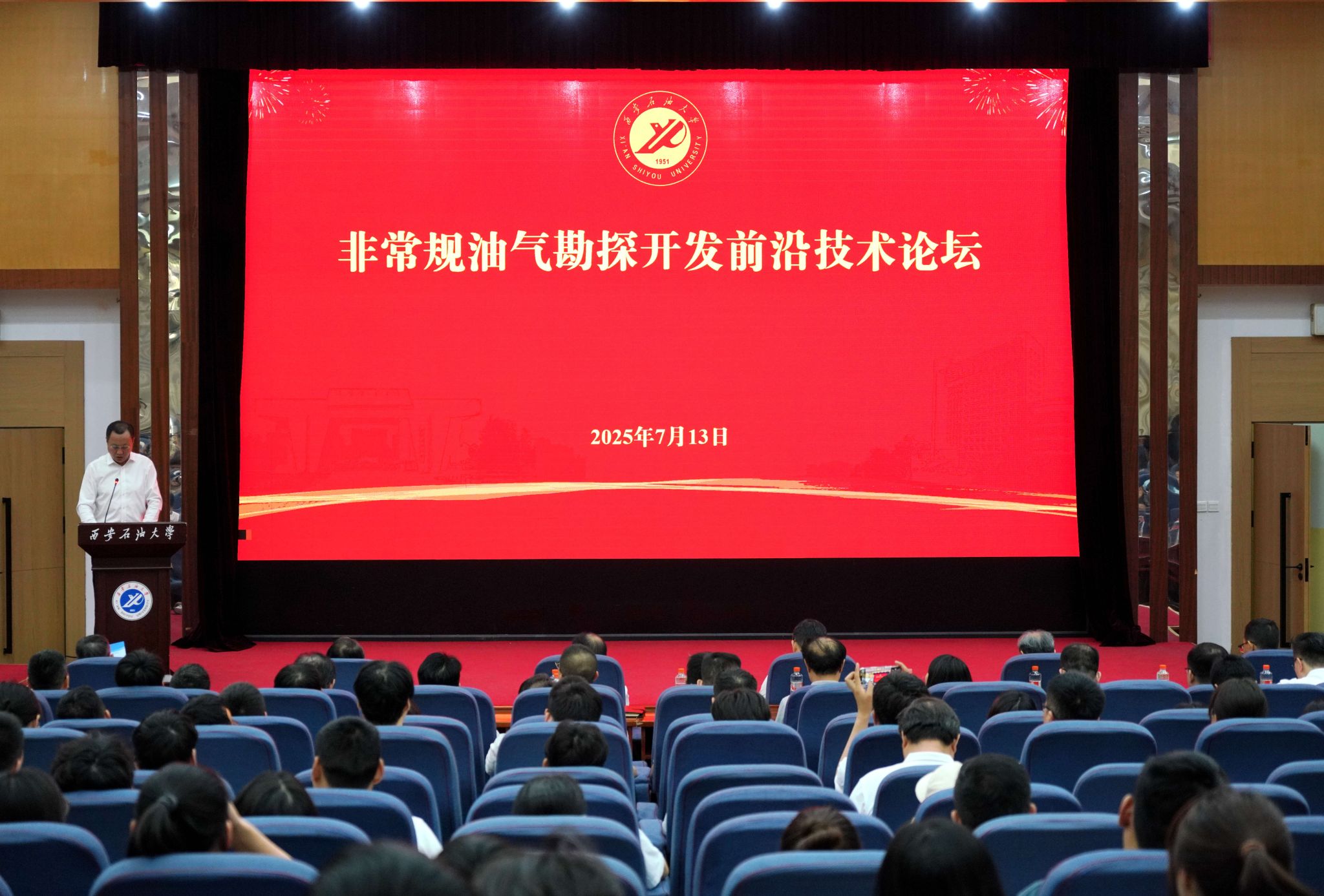 开幕式上,王进富代表学校致欢迎辞。他向莅临论坛的各位专家学者表示热烈欢迎和崇高敬意。他谈到,beat365英国官方网站长期扎根西部,坚持服务鄂尔多斯盆地,始终与国家能源战略同频共振,在非常规油气领域已构建起从基础理论研究到关键技术研发、工程应用服务的完整学科链和科研创新体系。他指出,非常规油气资源已成为保障国家能源安全的战略新支点,在“双碳”目标引领的能源转型关键期,深层页岩气高效开发、超低渗储层经济有效改造等“卡脖子”难题亟待突破,人工智能、大数据等新一代信息技术对传统勘探开发模式的革新刻不容缓,本次论坛的举办,旨在汇聚行业智慧,以前沿技术和创新思维共同探索破解之道,为中国能源事业注入西石大力量。