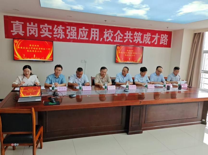 授牌仪式上,张君涛代表学校向长之河公司在共建校外实习实践教学基地过程中给予的支持,以及长期以来对学校发展的大力帮助表示诚挚感谢。他简要回顾了学校70余年的办学历史与发展脉络,详细介绍了学校第三次党代会擘画的发展蓝图、“三个小目标” 取得的阶段性成果,以及形成的 “三小三大三氛围” 良好发展态势。张君涛指出,学校因 “油” 而生、为 “油” 而兴,长期以来聚焦服务国家能源重大战略领域,学校以石油石化为鲜明特色,坚守 “立足陕西、面向西北、服务全国” 的办学定位,培养了大批具备 “四实一新” 特质的高素质专业技术人才。学校办学特色与长之河公司的发展方向、产业布局高度契合。他表示,希望以此次走访为契机,深化校企传统情谊,推动合作向纵深发展,在学生就业、“卓工” 人才与专业学位研究生贯通培养、实践教学基地共建等领域发挥双方优势、彰显特色,探索校企合作与产教融合的新范式、新路径,助力教育、科技、人才协同高质量发展,为保障国家能源安全战略贡献合力。