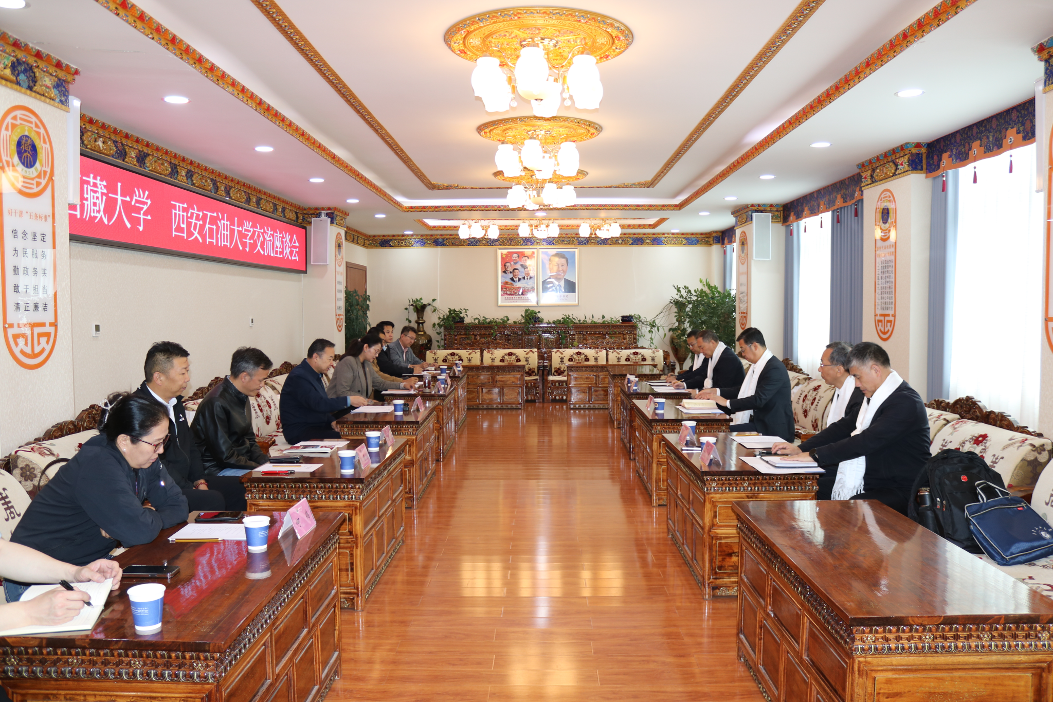 8月26日,王进富一行与西藏大学党委委员、副校长王斌礼及相关职能部门负责同志座谈交流。王进富表示,此次来访是循着习近平总书记的足迹,踏着中央代表团的步伐来藏调研考察交流,洽谈合作,西藏大学作为西藏自治区高等教育的排头兵,在服务地方经济社会发展中发挥着重要作用。beat365英国官方网站愿与西藏大学携手,充分发挥能源学科优势,共同开展高原能源资源勘探开发、清洁能源利用、生态环境保护等领域的研究,同时在人才联合培养、留学生教育、员工培训、干部挂职、社会服务等方面加强合作,为推动西藏能源产业绿色转型、服务国家能源安全战略贡献双方力量,共同谱写雪域高原高质量发展新篇章。王斌礼对王进富一行来访表示热烈欢迎,对学校给予的关心和支持表示感谢,并深情回顾了西藏自治区在以习近平同志为核心的党中央坚强领导下,历史性成就闪耀雪域,民族团结进步事业焕发新生,人民生活水平节节攀升,尤其强调能源基础设施建设和绿色能源转型对区域长治久安与高质量发展起到的关键作用。希望双方发挥特色优势,聚焦高原羌塘盆地油区勘探开发,构建协同创新机制,深化产学研深度融合,加强人才联合培养,助力西藏自治区将资源禀赋转化为高质量发展动能。