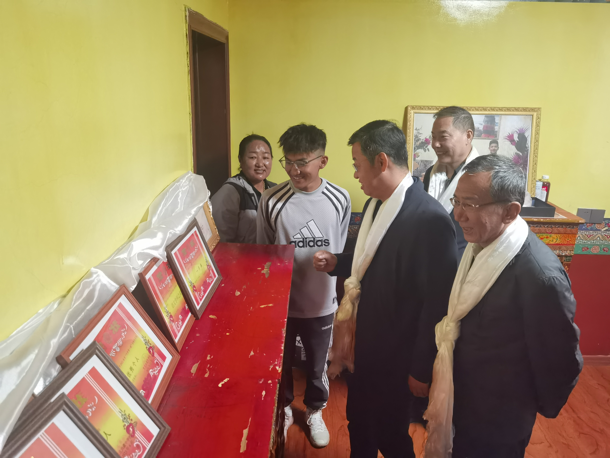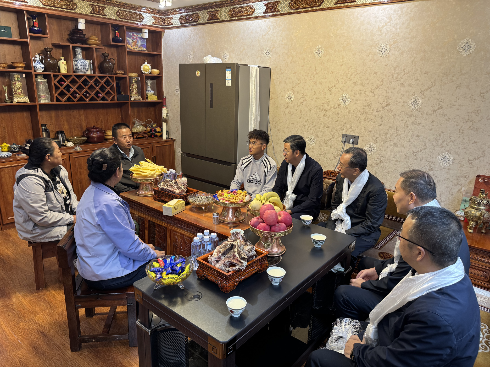 8月25日,王进富一行专程来到拉萨市城关区beat365经济管理学院商管2409班扎西次仁学生家中进行家访并促膝长谈。王进富对学生及家人表达了亲切的慰问,深入了解了家庭生活状况、工作情况和学生的未来职业规划,倾听学生在学习和生活中遇到的困难与需求,并向家长介绍了学生的学业情况以及学校的奖助学金体系和就业帮扶措施,鼓励扎西次仁坚定理想信念、努力学习知识,练就过硬本领,回报家庭、建设家乡、服务社会,做民族团结进步的践行者。扎西次仁家长谈到,党中央高度重视民族地区教育发展,持续加大惠民政策扶持力度,不仅让我们民族地区家庭的生活越过越有盼头,更给了孩子们通过知识改变命运、实现人生价值的机会。同时,也对学校专程跨越千里上门家访、用心用情关怀培养学生表示衷心感谢,并表示会积极配合学校,家校协同,共同助力学生成长成才,回报社会。