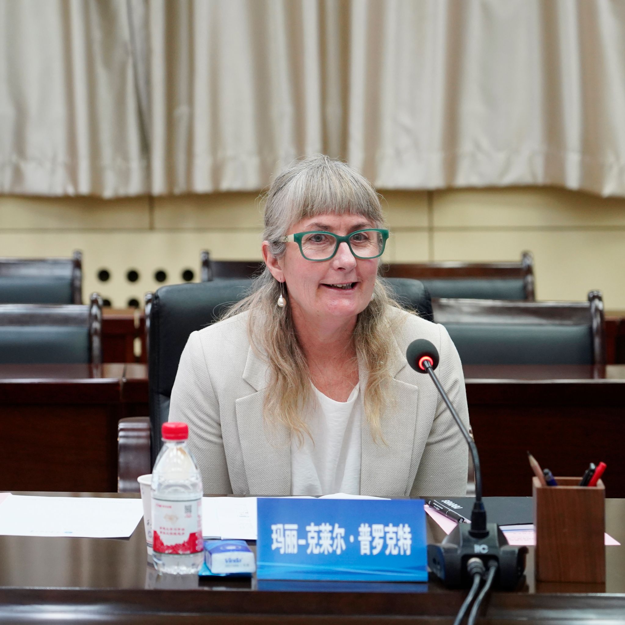 玛丽-克莱尔·普罗克特对学校的热情接待表示感谢。她表示,拓宽学生全球视野、提升学生学习能力、促进多元文化交流是全球教育工作者的共同目标,这一共识为两校开展务实合作奠定了坚实基础。在中新两国相互尊重、交流与合作背景下,两校的友好合作将有利于丰富学生国际视野与文化体验,为中新两国区域发展做出积极贡献。她表示,未来双方可在教学资源建设、科学研究协同、师生双向互访等领域携手共进,探索更多互利共赢的合作模式。