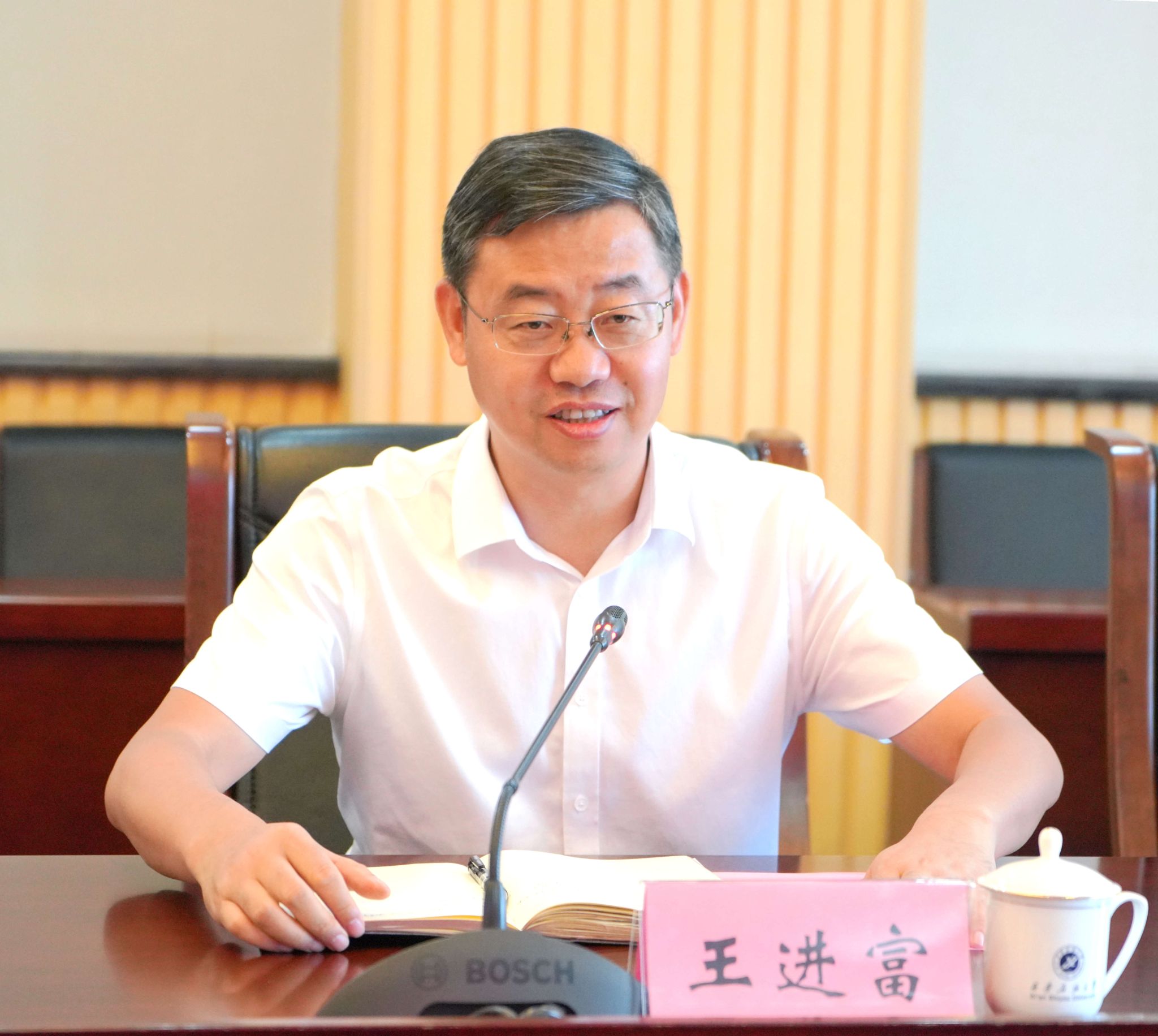 9月1日上午,中国石化陕西石油分公司总经理、党委副书记戴尽良一行来校交流访问,校长王进富出席座谈会并讲话。座谈会由校党委副书记张木主持。