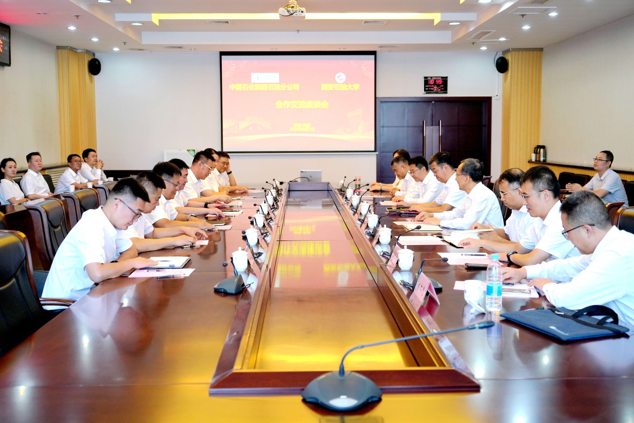 会议期间,与会人员共同观看了学校宣传片,双方还共同围绕党建共建、人才培养、学生实习就业、员工继续教育培训、教职工油品优惠、校园生活服务保障等多项内容进行了深入交流探讨。