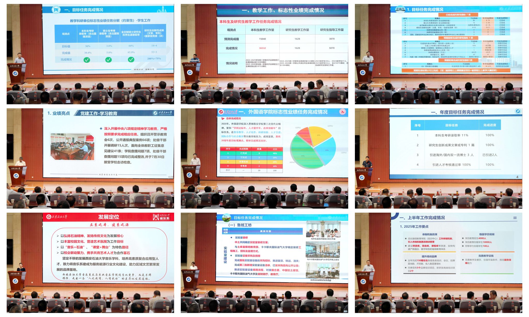 会上,20个院(系)和6个职能部门围绕学校2025年度工作要点,总结汇报了上半年目标任务完成情况、特色亮点工作、存在的问题及下半年工作计划。
