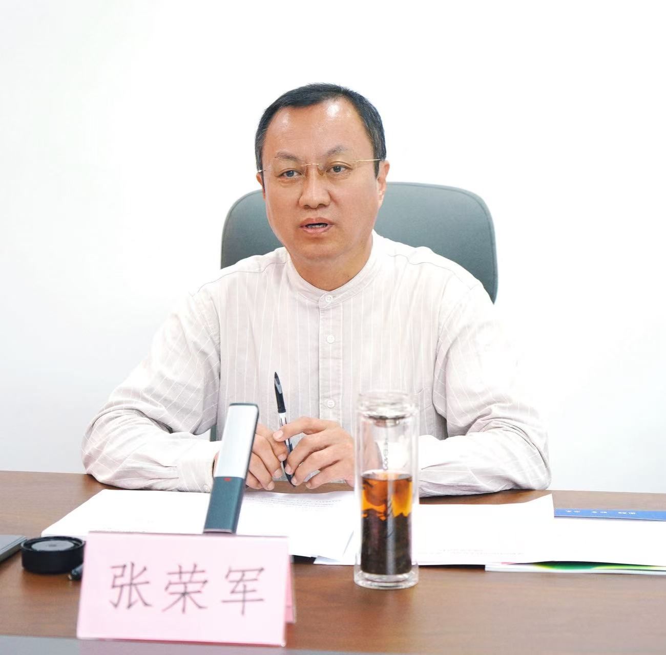 张荣军对刘占英一行的到来表示热烈欢迎。他介绍了学校的发展历程以及在科学研究、成果转化、人才培养和国际合作等方面取得的成就,特别是在能源装备、新材料、智能制造等领域的学科优势与产学研合作成果。他高度赞赏开发区近年来在产业集聚、创新生态构建和经济高质量发展方面取得的显著成绩,希望以此次交流为契机,进一步拓展合作空间、创新合作模式,推动双方共建高水平科研平台、共享实验室及人才培养基地,全面深化在科研攻关、成果转化与产业孵化等领域的务实合作,实现资源共享与优势互补,携手打造深度融合、协同创新的校地合作典范。