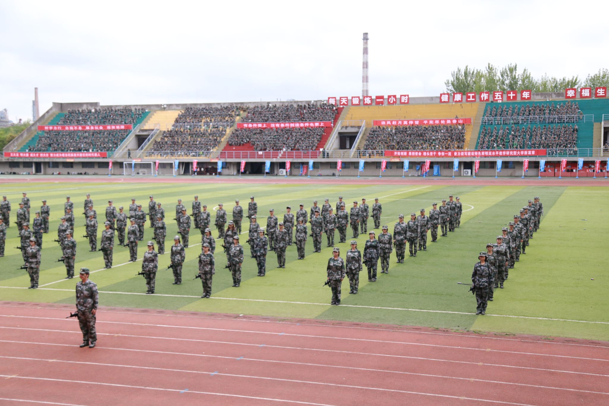 2025级本科生在雨后初晴的蓝天下昂首挺胸,以昂扬的斗志、整齐的步伐,向全校师生展示他们的成长与蜕变。“手旗方阵、队列表演、战术演练、格斗对抗、匕手操方队、刺杀操”六个环节的军训成果一一展示在大家面前。在整齐的动作和嘹亮的口号中,同学们用昂扬向上的姿态展示了14天的军训训练成果,展现了西石大学子自强自信、团结拼搏的精神风貌。