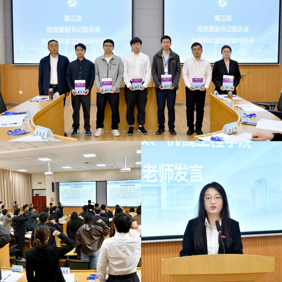 开班式后,程永清以《弘扬教育家精神促进学生成长成才——从先辈学人奋斗足迹看高校教师的价值选择》为题,为参训人员带来第一讲。报告围绕三大核心维度展开:在“红色血脉:学校成立的宏大历史背景”部分,他系统梳理了学校在时代浪潮中应运而生的历程,展现了学校与国家发展、民族命运紧密相连的深厚底蕴,让参训教师深刻认识到学校发展的历史必然性与使命特殊性;在“永恒灯塔:先辈学人的奋斗足迹”部分,通过讲述多位先辈学人扎根教育、潜心科研、服务社会的感人事迹,生动诠释了“学高为师、身正为范”的精神内涵,为新入职教师树立了可学可做的榜样;在“价值选择:践行和弘扬教育家精神”部分,结合新时代教育事业发展要求,深入解读了教育家精神的时代内涵,引导参训教师思考如何将个人理想融入教育事业,在日常教学、科研与育人工作中践行教育家精神,以正确的价值选择助力学生成长成才。他指出,青年教师要加深对传统文化理解,强化对学习本身认识,学会运用辩证思维,持续提升专业发展。整场报告既有历史厚度,又有现实温度,引发了参训教师的强烈共鸣。他强调,此次研修是学校加强教师队伍建设、筑牢人才思想根基的重要举措,希望全体参训教师在学习中汲取力量,在感悟中明确方向,尽快成长为兼具学识素养与育人情怀的优秀教育工作者。