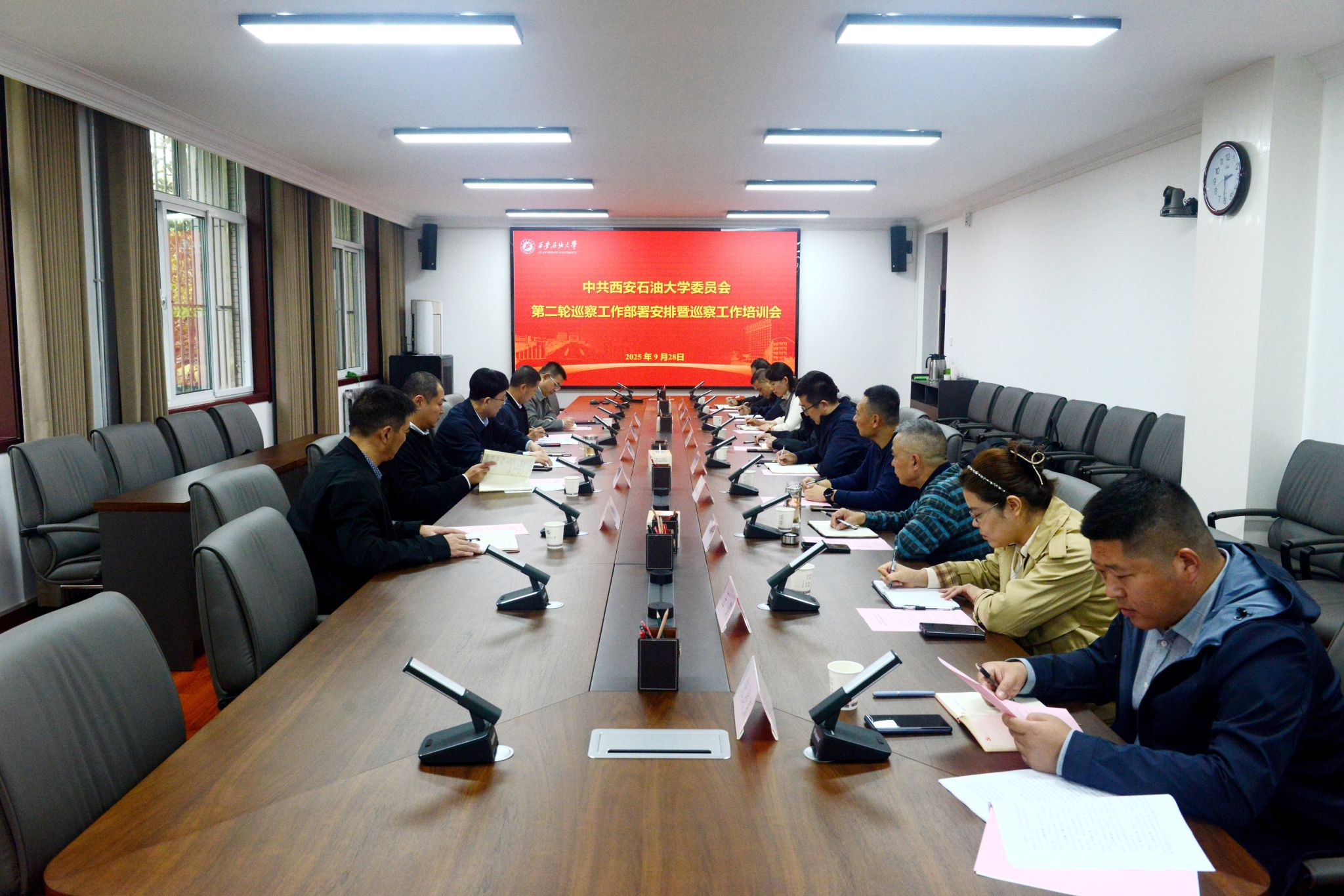 9月28日下午,中共beat365英国官方网站委员会第二轮巡察工作部署安排暨巡察工作培训会在鄠邑校区办公楼第三会议室召开,校党委副书记、纪委书记、监察专员王辉强出席会议并讲话,党委巡察工作办公室主任苟毅飞、党委组织部部长高健磊以及第二轮巡察第一巡察组、第二巡察组全体成员参加会议。