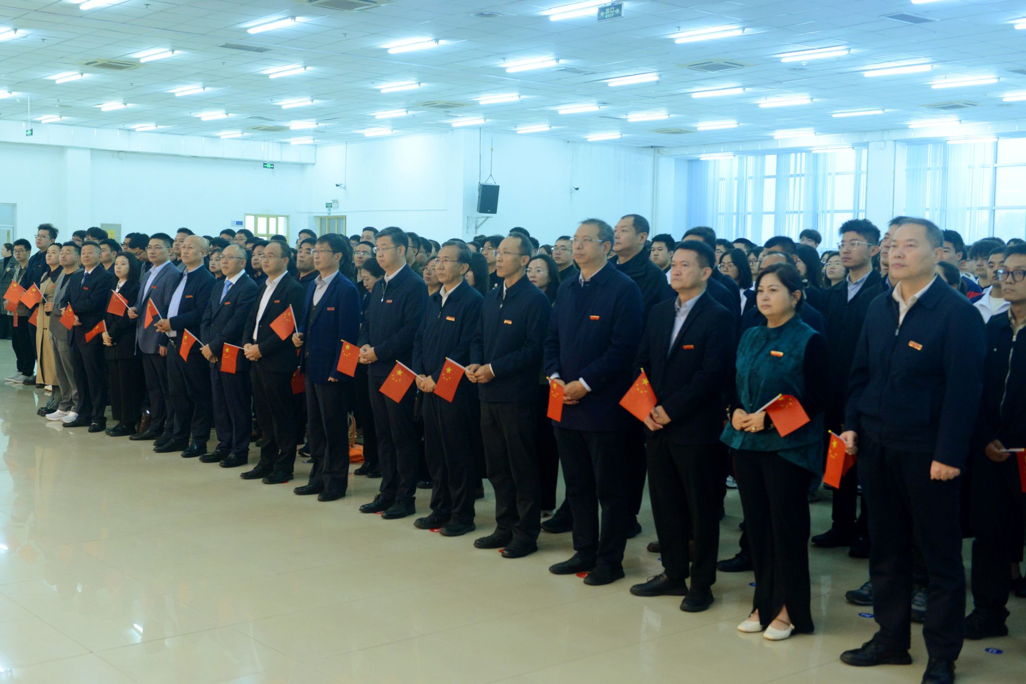 国旗护卫队队员奋力展旗,全场师生面向鲜艳的五星红旗行注目礼并高唱国歌。师生代表深情朗诵了《国旗领航,“油”我担当》,表达了西石大人扎根能源领域、矢志为国奉献的坚定决心。