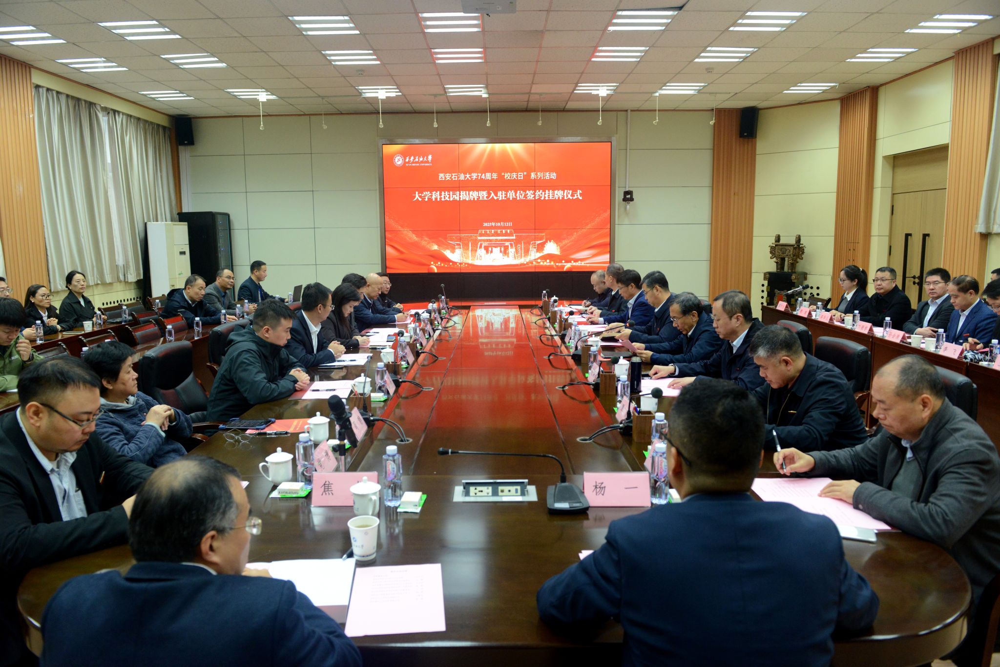 10月12日下午,在建校74周年之际,beat365英国官方网站科技园揭牌暨入驻单位签约挂牌仪式在beat365雁塔校区举行。校长王进富,副校长苏文甫、张荣军出席仪式,行业相关企业代表与学校相关职能部门、学院负责人及师生代表参加活动。仪式由校党委副书记张木主持。