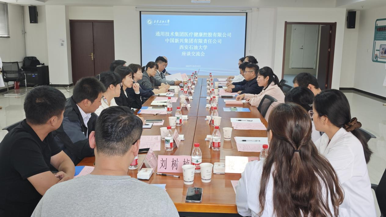 张骁勇对戴莲、蔡望、刘洋一行的到来表示热烈欢迎。他详细介绍了学校办学历史、发展规划及学科特色。他指出,学校秉持“建设幸福西石大、培养行业专业人才”的使命,在石油特色领域人才培养中优势鲜明。近几年主动顺应校企协同合作趋势,积极深化校友与母校的联系,以协助互惠为原则探讨友好合作路径。他谈到,校医院通过医联体协作、专家坐诊等方式补短板、提水平,希望此次座谈交流找准校企协作新切入点,开启共赢新篇章。他希望,两家企业作为国内大型医疗集团及陕西区域医疗一体化的重要推动力量,在医疗业务、管理模式上极具借鉴价值,双方在医疗服务、人才就业领域合作空间广阔,希望进一步整合资源,实现提升医疗质量提升、健康管理规范、优秀人才输送的全方位共赢。
