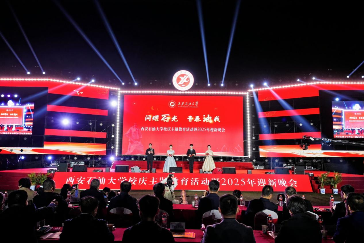 在庆祝建校74周年之际,举办2025年迎新晚会,旨在欢迎2025级新生融入西石大大家庭,凝聚“一流西石大、文化西石大、幸福西石大”建设合力,共筑能源报国理想,打造一堂生动的入学教育课。本场晚会以“闪耀‘石’光,青春‘油’我”为主题,分为“好学•理想逐梦追光”“力行•青春挺膺担当”“自强•奋斗扬帆起航”“不息•共筑辉煌明天”四个篇章。晚会从逐梦追光的理想,到躬身担当的青春,再到扬帆起航的奋斗,最后共筑辉煌的明天,每一个节目都饱含着西石大学子的热忱与担当。