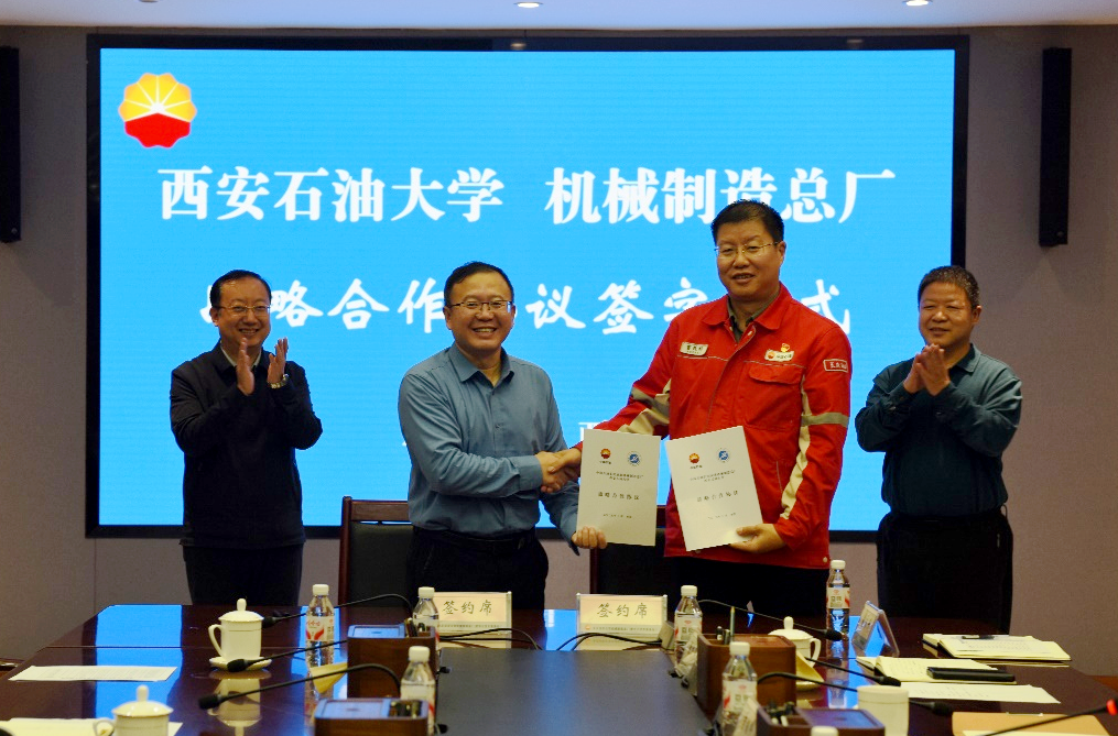 座谈会上,机械工程学院院长刘少胡与中国石油长庆油田机械制造总厂签订战略合作协议。