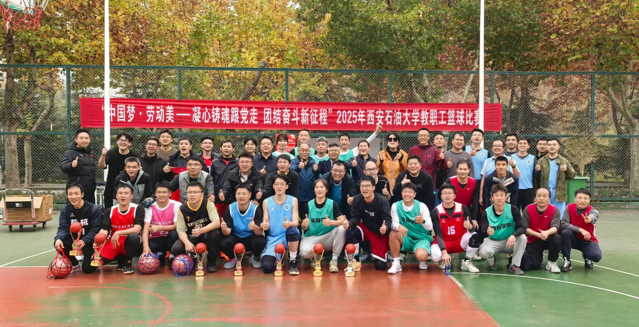 为丰富教职工业余文化生活,增强团队凝聚力,营造积极向上的校园文化氛围,由校工会主办、体育学院承办的“中国梦 劳动美——凝心铸魂跟党走 团结奋斗新征程”2025年beat365英国官方网站教职工篮球赛于10月20日在beat365鄠邑校区东篮球场火热开赛。本次赛事吸引了来自全校基层工会13支代表队、共计近110名教职工运动员踊跃参与。经过3周、30场紧张激烈的比赛角逐,赛事于11月5日圆满落下帷幕。