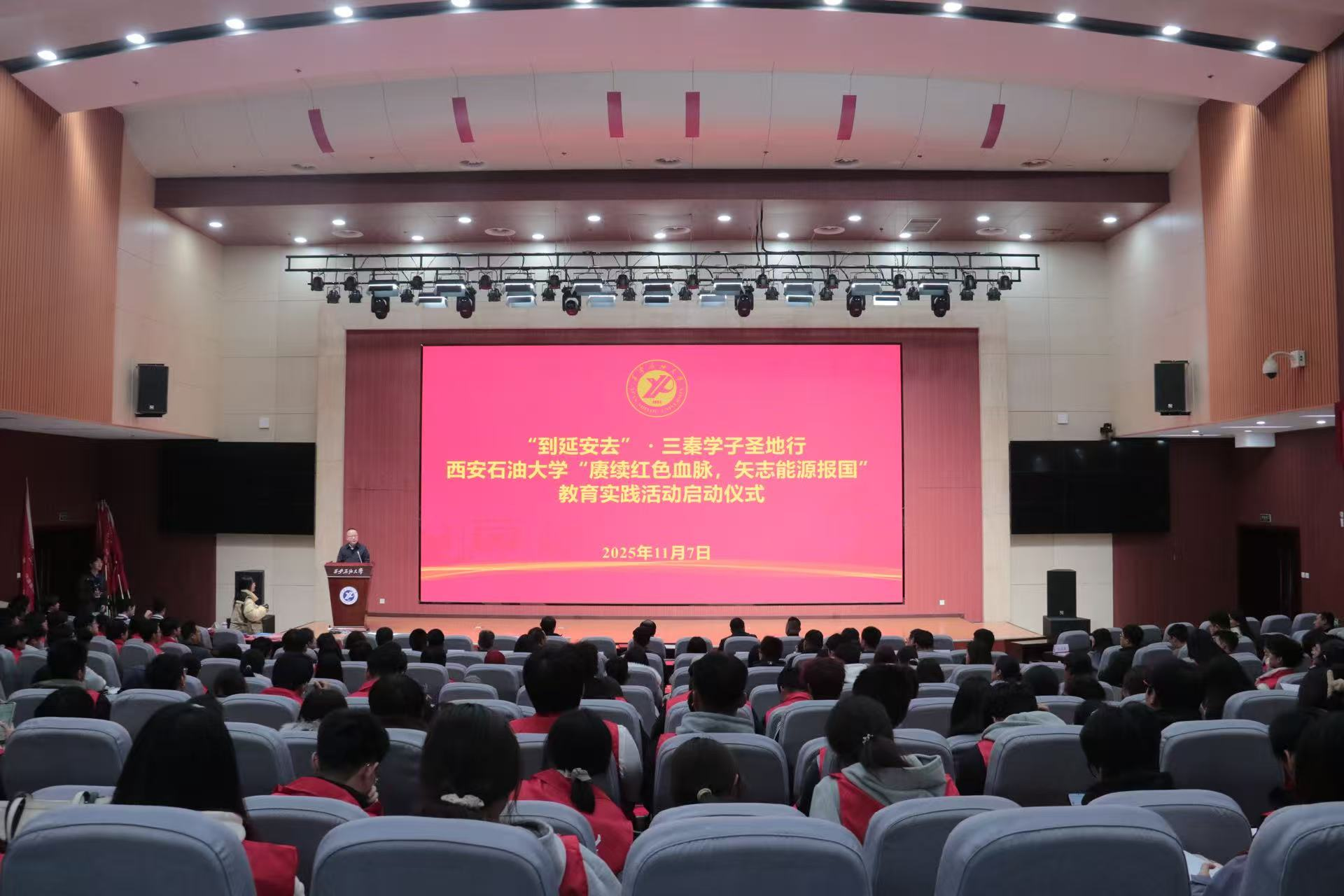 为深入贯彻习近平总书记关于“延安精神是党的宝贵精神财富,要代代传承下去”的重要指示精神,用好延安革命圣地丰富的红色资源,充分发挥育人作用,根据陕西省委教育工委《关于组织开展“到延安去”·三秦学子圣地行活动的通知》要求,推动红色文化资源深度融入“大思政课”建设和立德树人全过程,11月7日下午,学校在鄠邑校区弘石学术报告厅举行“到延安去”・三秦学子圣地行—beat365英国官方网站“赓续红色血脉,矢志能源报国”教育实践活动启动仪式。副校长种宇宏出席仪式并讲话,党委组织部、党委学生工作部、校团委、马克思主义学院、继续教育学院等单位负责人,各院(系)学生工作负责人,团委(团总支)书记,学生党支部书记及预备党员代表,第十八期校级青年马克思主义者干部培训班优秀学员代表,团学骨干代表,2025级班级团支部书记代表400余人参加仪式。