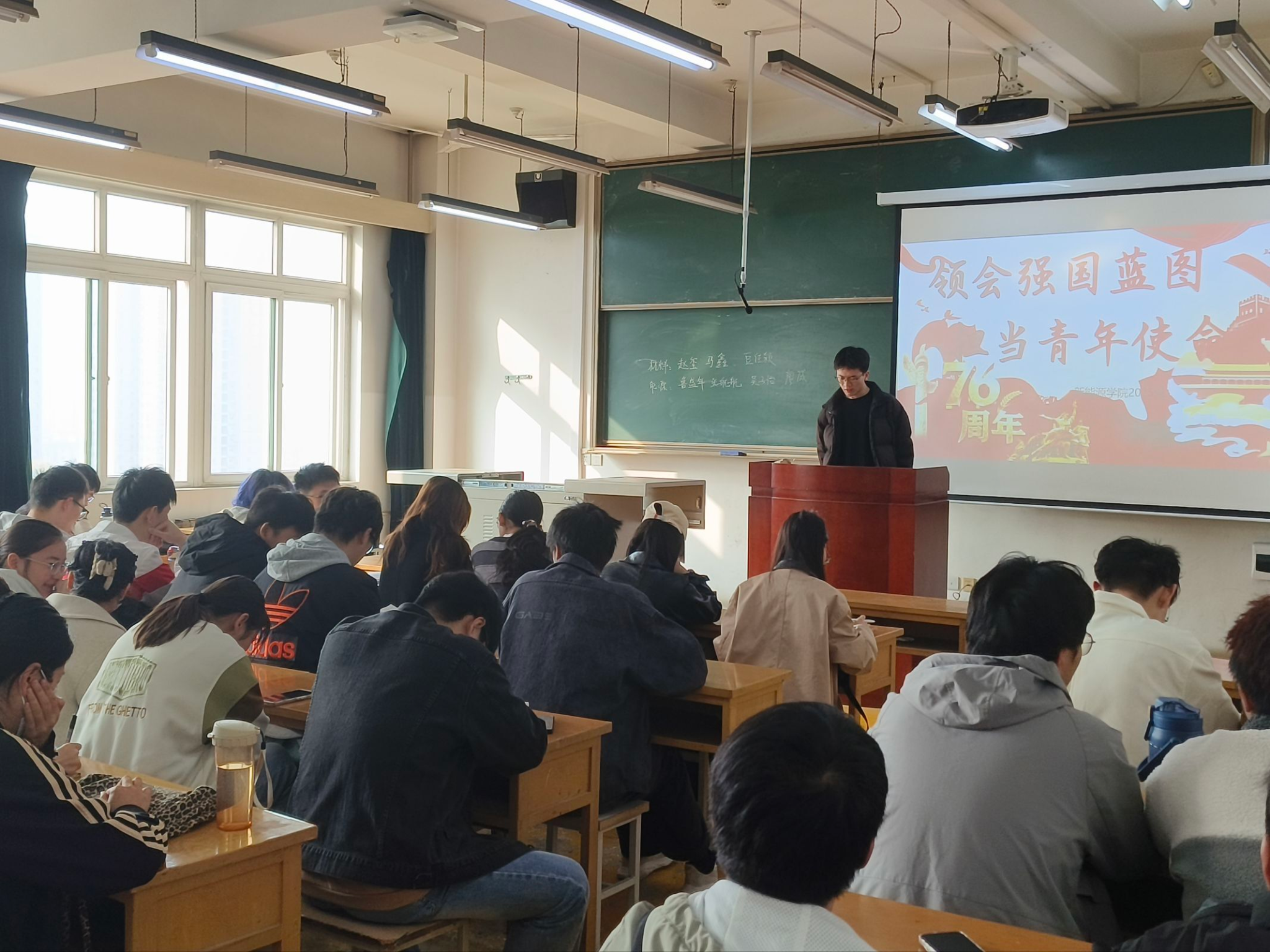 外国语学院召开“不忘初心、牢记使命”学习党的二十届四中全会精神主题团日活动。团支书通过PPT,从全会核心议程、“十五五”规划部署及青年使命三个维度进行了系统解读,并巧妙结合外语专业特色,指出在“网络强国”“文化繁荣”等国家任务中,多语种服务、人工智能翻译、跨文化传播等领域是外语人的用武之地。在互动研讨中,翻译专业同学分享了在“中国典籍外译”项目中如何更好地传递中国文化智慧的思考;学习委员则从“统筹发展和安全”角度,阐述了坚守“学术诚信”底线的重要性。活动有效引导同学们将国家大政方针与专业学习、学术研究紧密结合,深化了对外语人作为文化交流桥梁、学术安全守护者角色的认识,凝聚了“强国有我”的共识与担当。