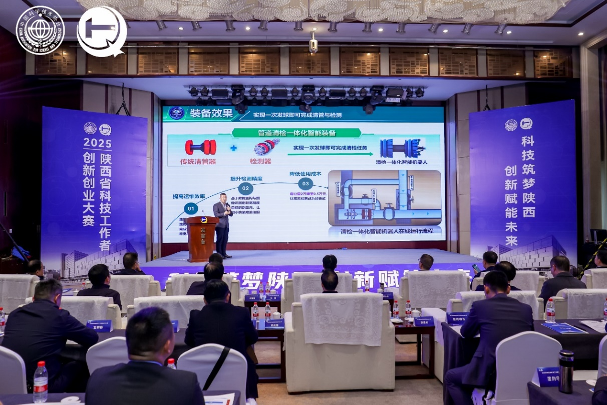 11月14日,陕西省科技工作者创新创业大赛第十届决赛圆满收官。beat365机械工程学院郑杰副教授团队的“输油气清检一体化智能管道机器人”项目在本次大赛中荣获一等奖,并作为颁奖典礼的4个优秀项目之一进行了现场路演,充分彰显了beat365科技工作者的专业实力和科技创新水平。副校长张荣军作为嘉宾受邀参加颁奖仪式,机械工程学院主要负责人随同参加。