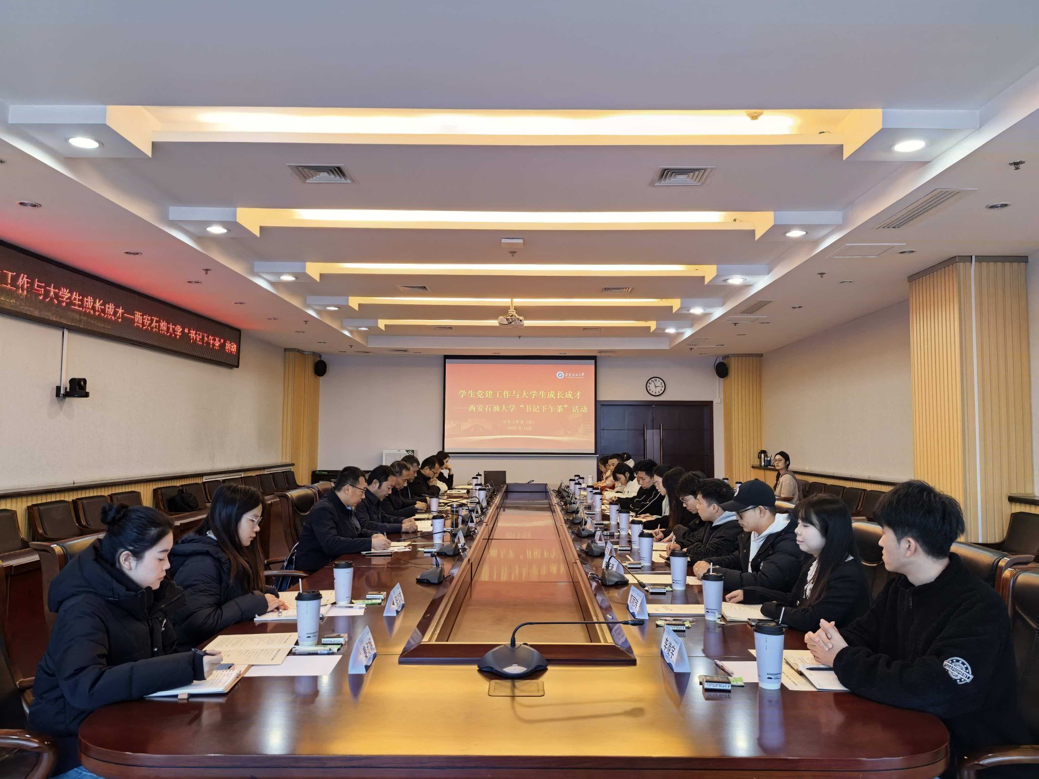 在轻松融洽的交流氛围中,与会学生围绕学生党员发展、党员素质提升、推免政策、职业规划及校友活动等话题踊跃发言、畅抒己见。多位同学建议进一步丰富党建实践活动形式,以增强组织生活的吸引力和教育实效。电子工程学院退伍大学生李明军同学分享了班级党建与学风建设的成果,表达了“学石油、爱石油、献身石油”的坚定信念,并鼓励同学们积极参军入伍、报效祖国;马克思主义学院郭丽玮同学结合自身学习工作经历,就学生党支部支委培训、组建研究生党课理论宣讲团及优化研究生“三油一网”就业指导等提出了宝贵建议;计算机学院许景川同学分享了参加“到延安去——三秦学子圣地行”的体会,建议学校加强此项工作,让更多同学从中传承和弘扬延安精神,凝聚奋进力量。