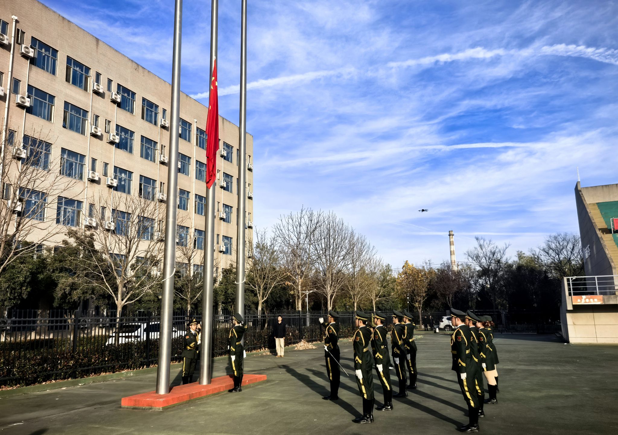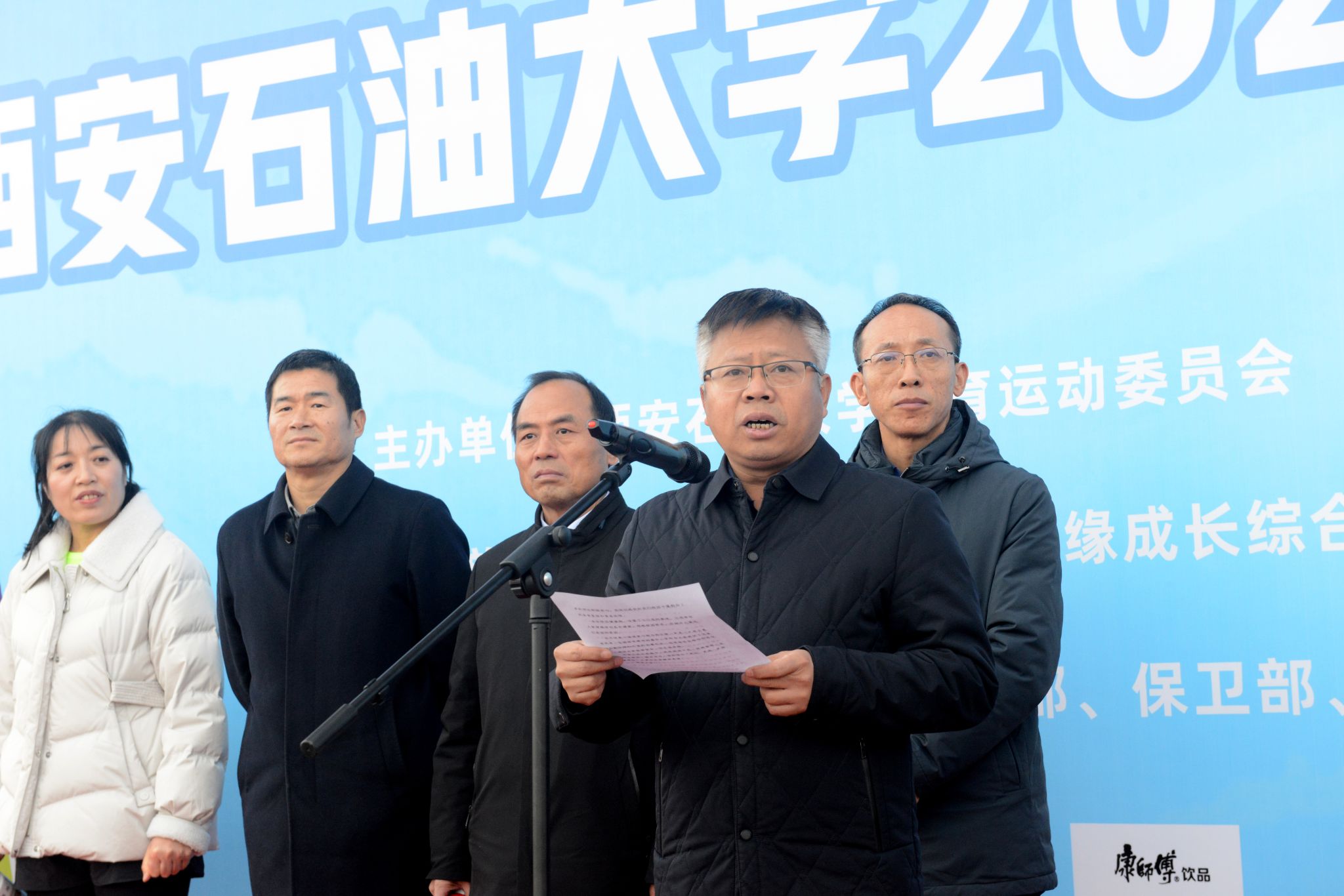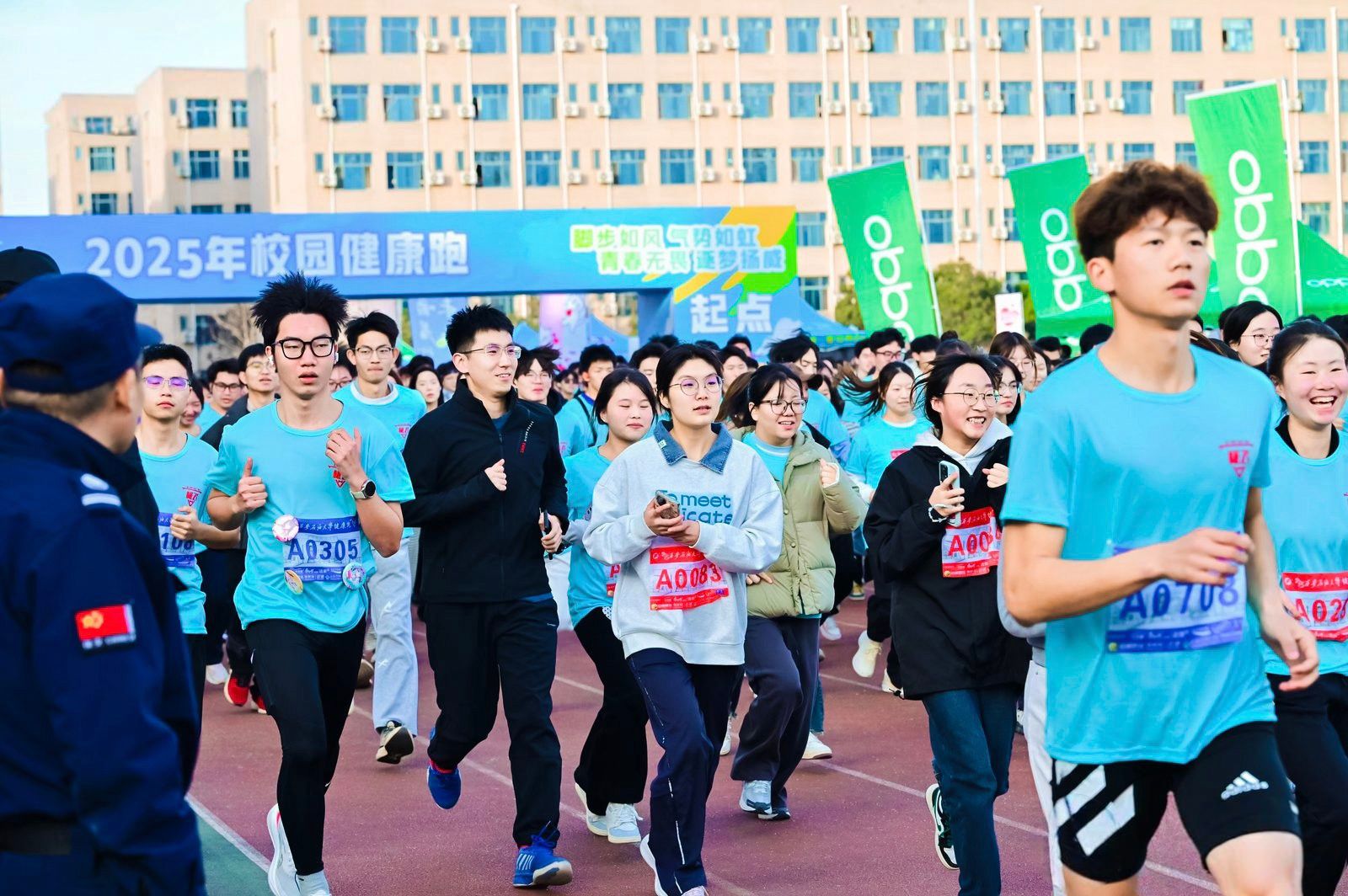 16时,开幕仪式正式拉开帷幕。集体热身后,全体参与者齐唱国歌,激昂的旋律回荡在校园上空。副校长张骁勇在致辞中表示,推动全民健身与全民健康深度融合,是党和国家的重要方针。举办本次校园健康跑,不仅是一场体育赛事,更是一场展示校园活力和师生精神风貌的体育盛会。希望大家在奔跑中,既能挑战自我、突破极限,也能相互鼓励、携手并进,深刻体会“更快、更高、更强、更团结”的奥林匹克精神真谛。