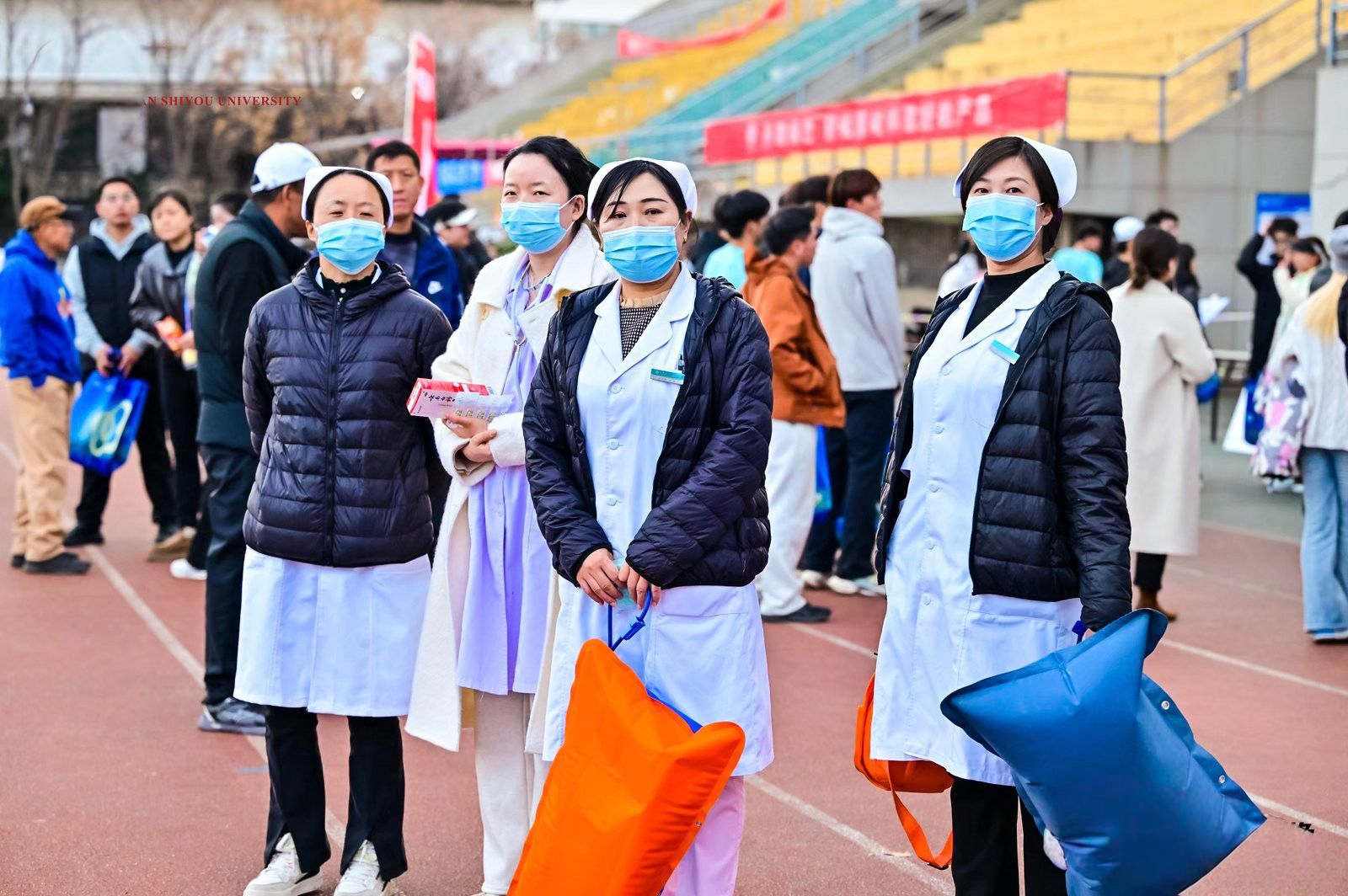 为保障活动安全进行,所有参赛者均提前签署了《健康安全承诺书》,承诺遵守赛事规则,服从工作人员安排。医疗、安保和补给站志愿者各司其职,为选手提供全方位的保障服务。校医院全程待命,确保能够及时处理突发情况。