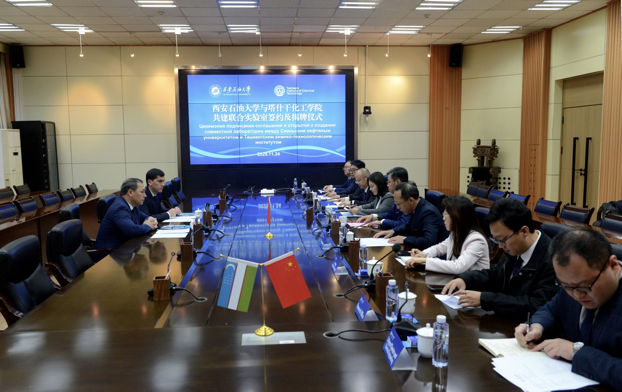 11月24日上午,塔什干化工学院校长博蒂尔·乌斯莫诺夫教授一行来校访问,并举行了两校共建“资源利用与环境保护联合实验室”签约及揭牌仪式。签约及揭牌仪式在雁塔校区会议中心第二会议室、化工实验室分别举行,校长王进富出席,副校长张君涛主持。