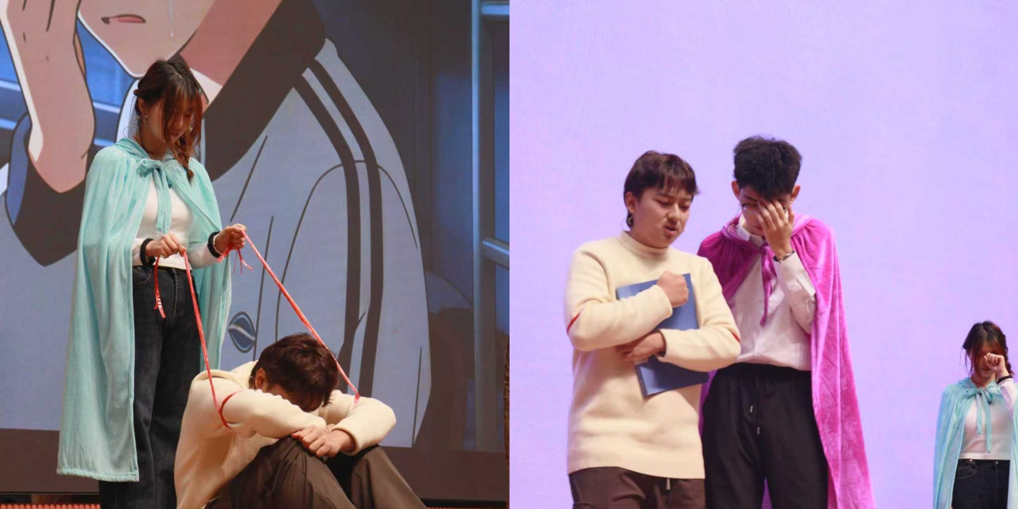 本次比赛共有16个学院17支队伍报名,经过前期的初赛后共有8支学院代表队进入决赛。八部作品以青春为底色,将大学生成长中的困惑、温暖与蜕变搬上舞台,在欢笑与动容的交织中,精彩得勾勒出当代青年的心灵图谱。《心之所向,素履以往》聚焦大学生遇学业就业压力陷入内耗的热点问题,演绎以情绪为核心,不断闯关,解开心结,逐步自我接纳与成长的历程。《坚守与诱祸》则围绕大学生因保研问题误入歧途走偏方向,在辅导员和同学的帮助下重拾信心,努力前进的故事。《优秀标签的“诅咒”》以大学生面临的“完美主义”心理枷锁为引,展示了林薇这朵“优秀玫瑰”如何挣脱刻板标签,寻回真实自我。《金缮》关注当代大学生生活中的烦恼重重,以金缮喻人生,传递着青春总有磕绊,裂痕也并非缺憾的信条,金缮的哲思里,藏着关于成长的答案,直面青春挫折,伤痕终将化作成长金印。《“纸枷”》集中于思考随着当下各种AI软件兴起,大学生在学术规范与论文写作中,如何正确使用AI软件,回应社会所关心的问题。《非我之我》通过性格迥异的两位新生互换处事方式,因不同碰撞,又因“成为彼此”而磨合,最终寻得了成长的平衡点。《灯火重明》关注大学生“讨好型”问题,以灯火喻本心,直面期待枷锁,将疲惫化作拥抱自我的温暖光痕。岩层断层藏着地球密码,人心隔阂藏着蜕变契机,《断层上的桥梁》讲述了主角因学习问题被孤立,最终凭借自身努力和朋友帮助成功化解难题并取得了进步的故事。