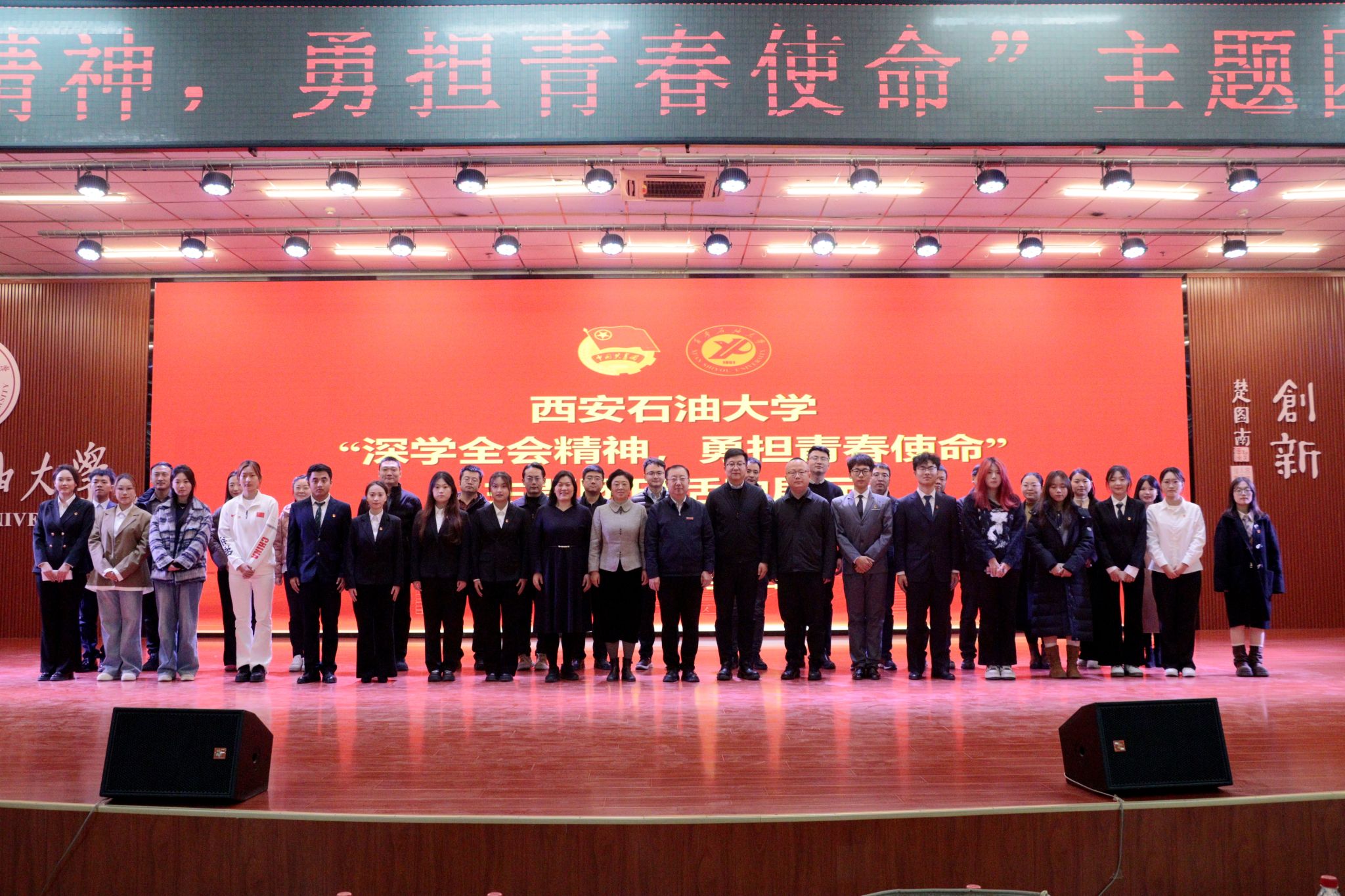 为引导团员青年深刻领会党的二十届四中全会精神核心要义,集中展示beat365基层团组织风采和主题团日活动实效,发挥先进典型的示范引领作用,进一步激发全校团员青年的爱国热情与奋斗精神,12月17日晚,学校在鄠邑校区腾辉大学生活动中心举办“深学全会精神,勇担青春使命”主题团日活动展示,副校长种宇宏出席,相关职能处室负责人担任评委,各院(系)团委(团总支)书记及300余名学生代表参加活动。